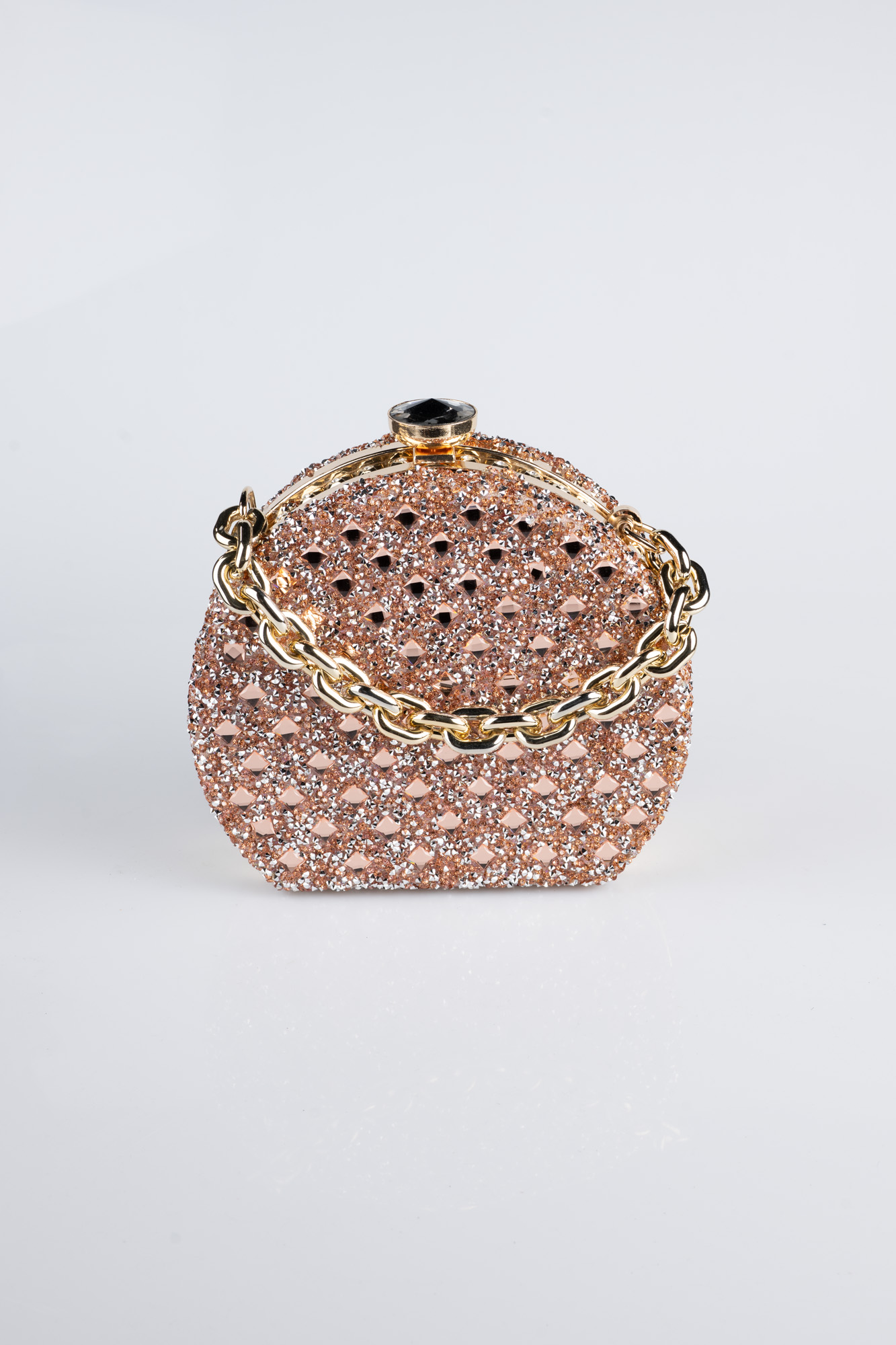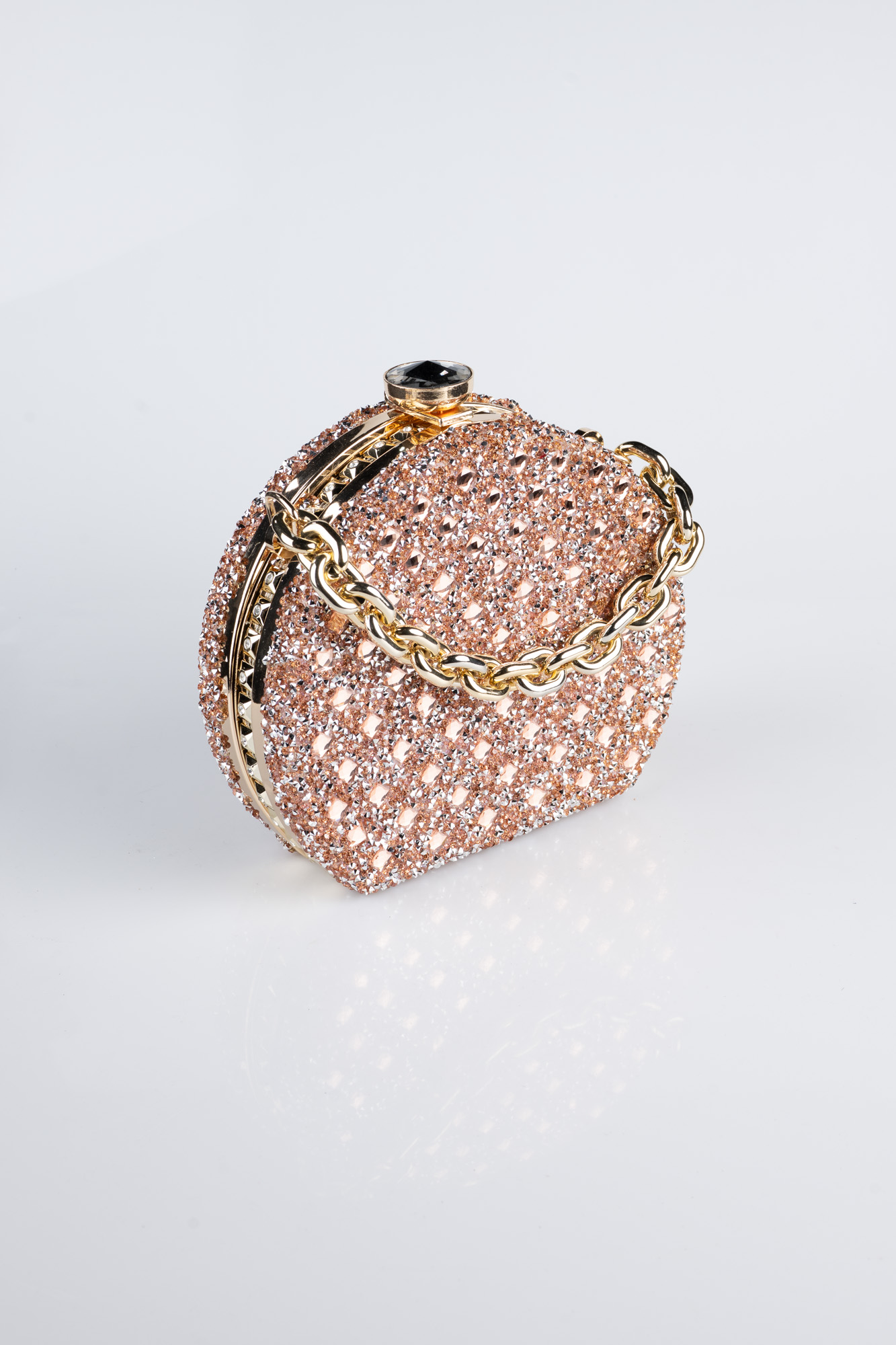 Altın-Gül Kurusu Taşlı Gece Çantası SH854