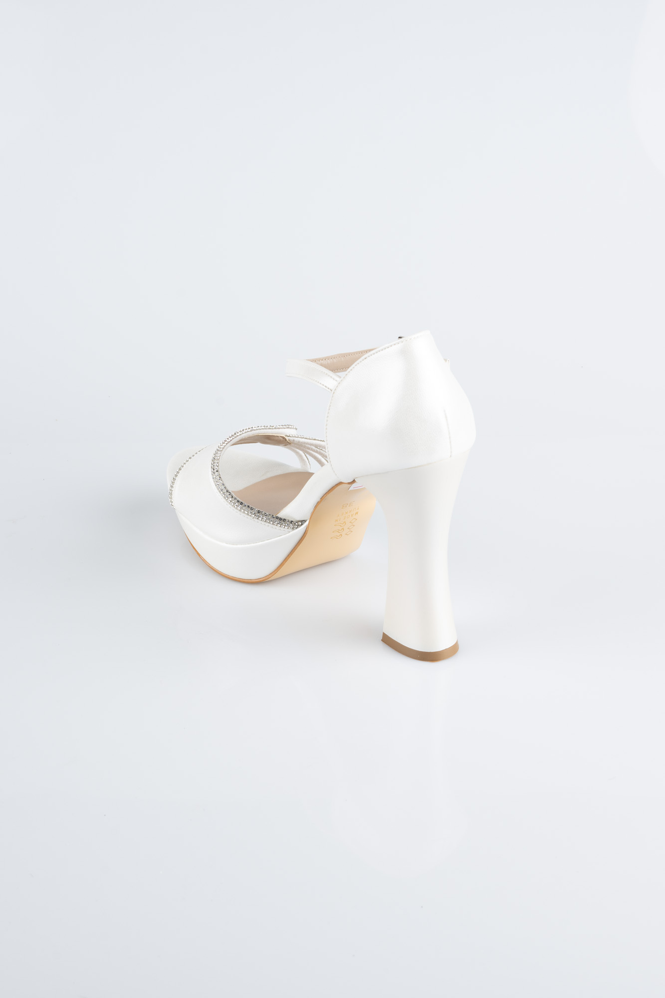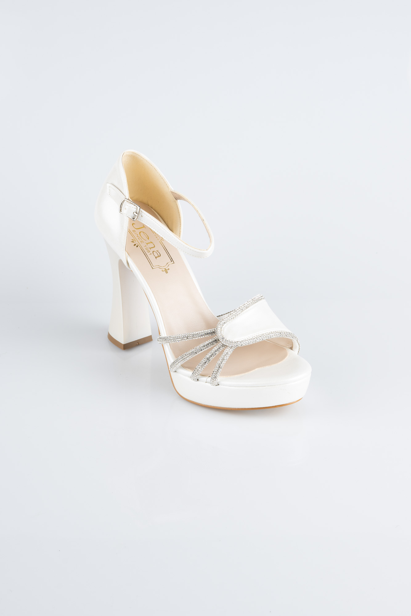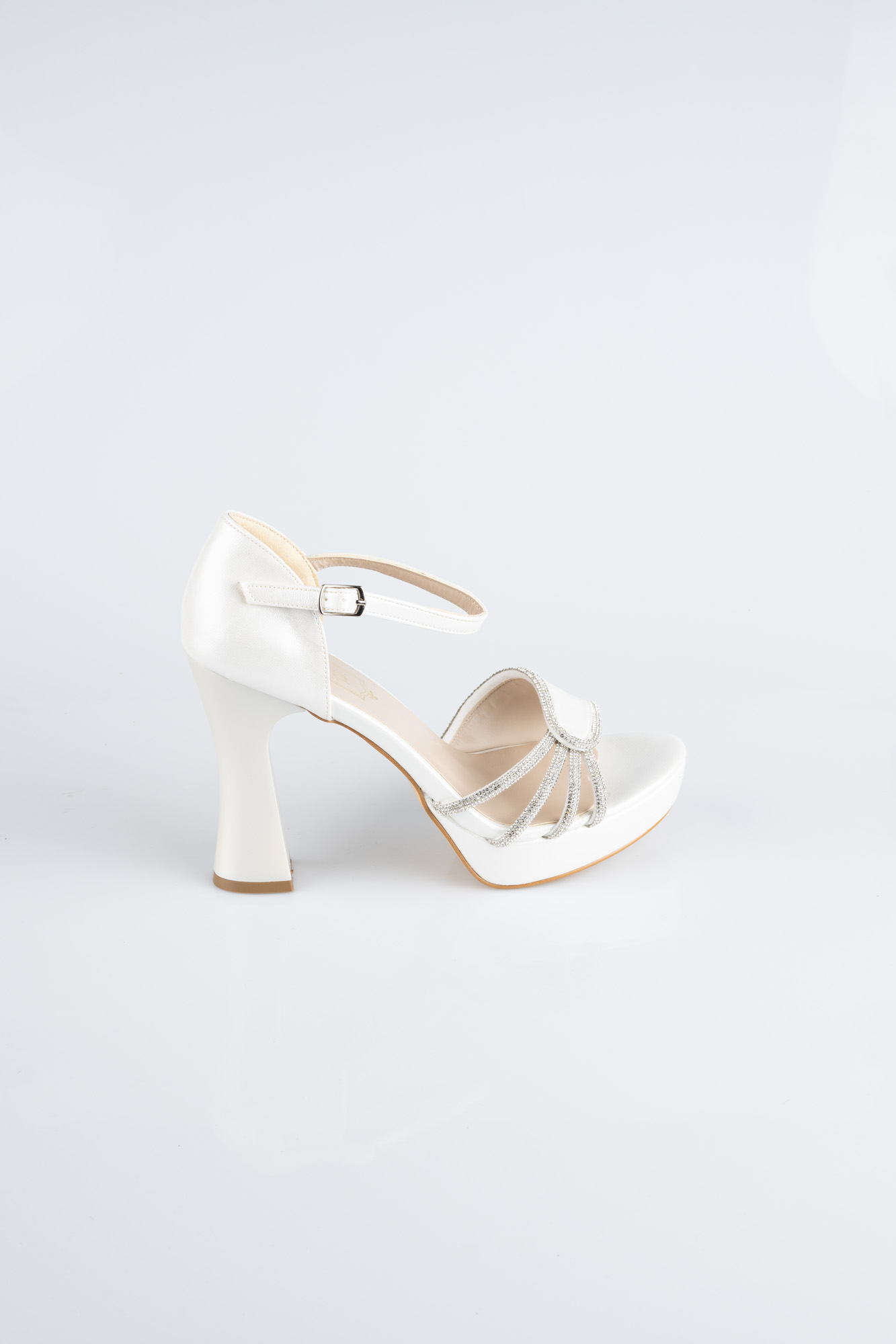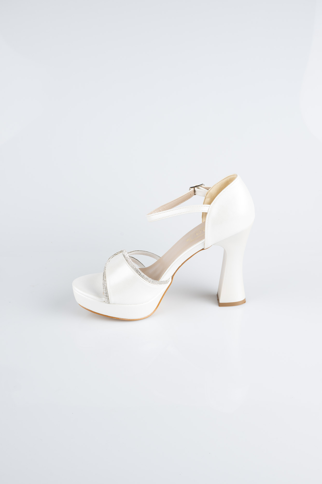 Ekru Deri Platform Topuk Abiye Ayakkabı MJD3409