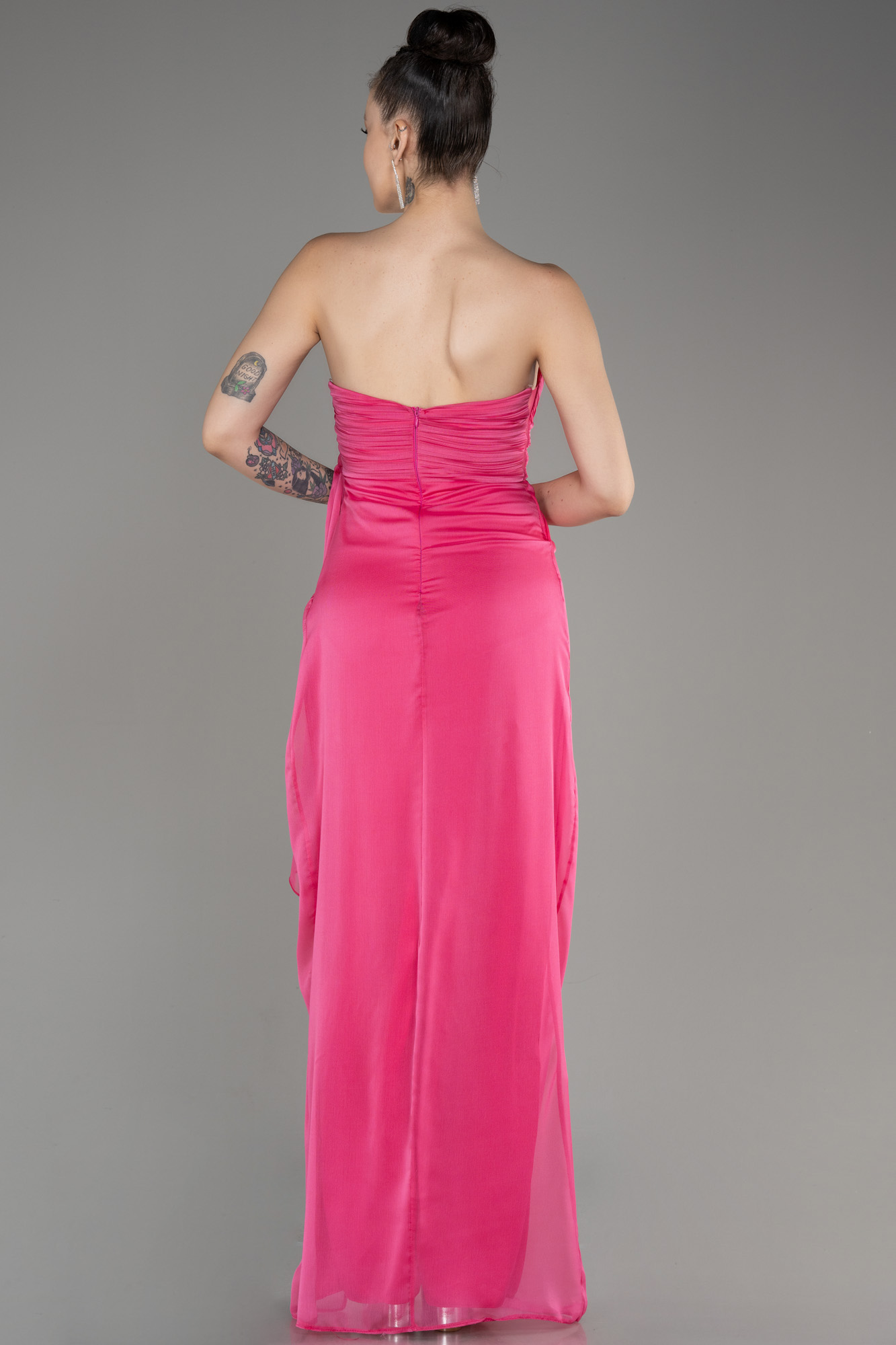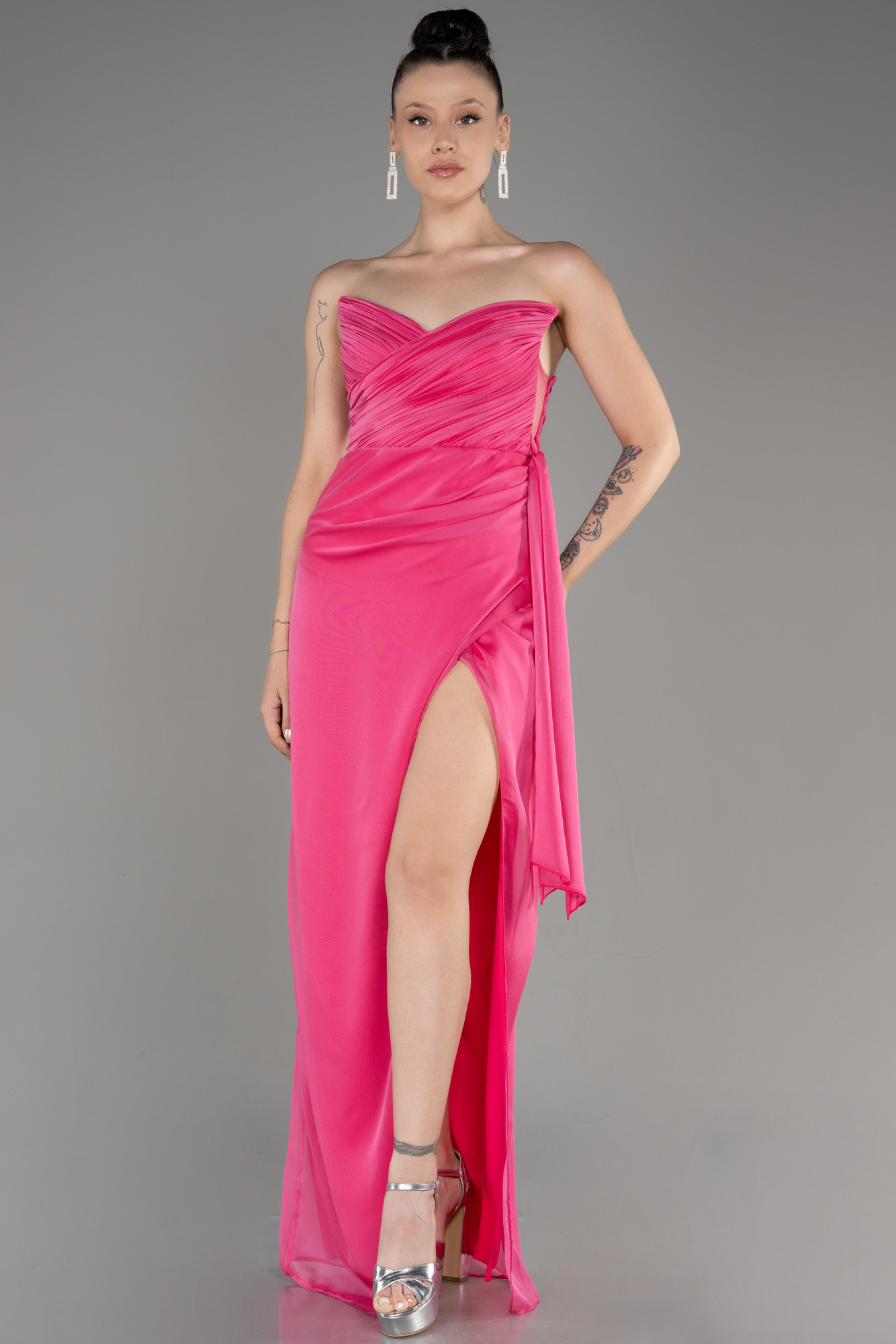 Fuşya Straplez Bacak Dekolteli Uzun Şifon Abiye ABU3947