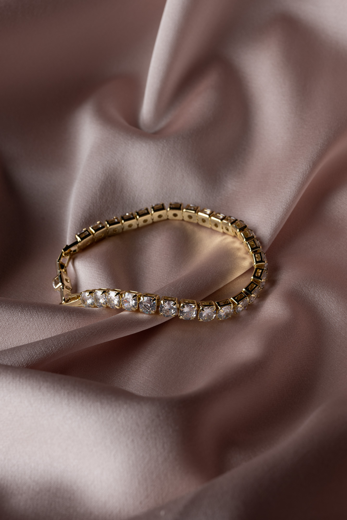Gold Swarovski Taşlı Abiye Bileklik UK776