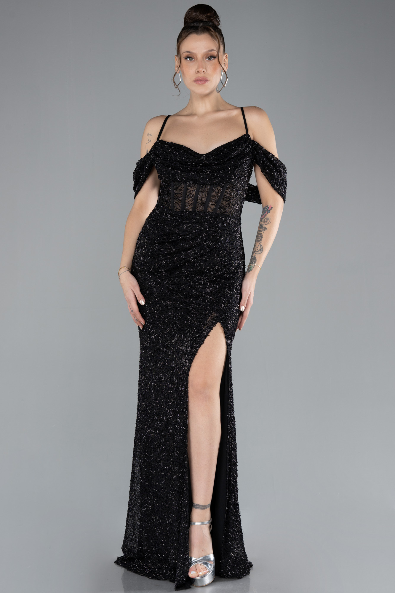 . Kayık yaka uzun abiye elbise, özel günlerinize unutulmaz bir dokunuş katmak için tasarlandı. İnce işçilikle süslenmiş boncuk detayları, elbiseye ışıltılı bir görünüm kazandırırken, bacak ve omuz dekoltesi modern ve cesur bir stil sunar. Yaka detayı, asil bir duruş oluştururken, derin bacak dekoltesi sofistike ve dikkat çekici bir hava yaratır. Özel tasarım, nişan, düğün, gala veya kokteyl gibi etkinliklerde şıklığınızla göz kamaştırmanızı sağlayacak.