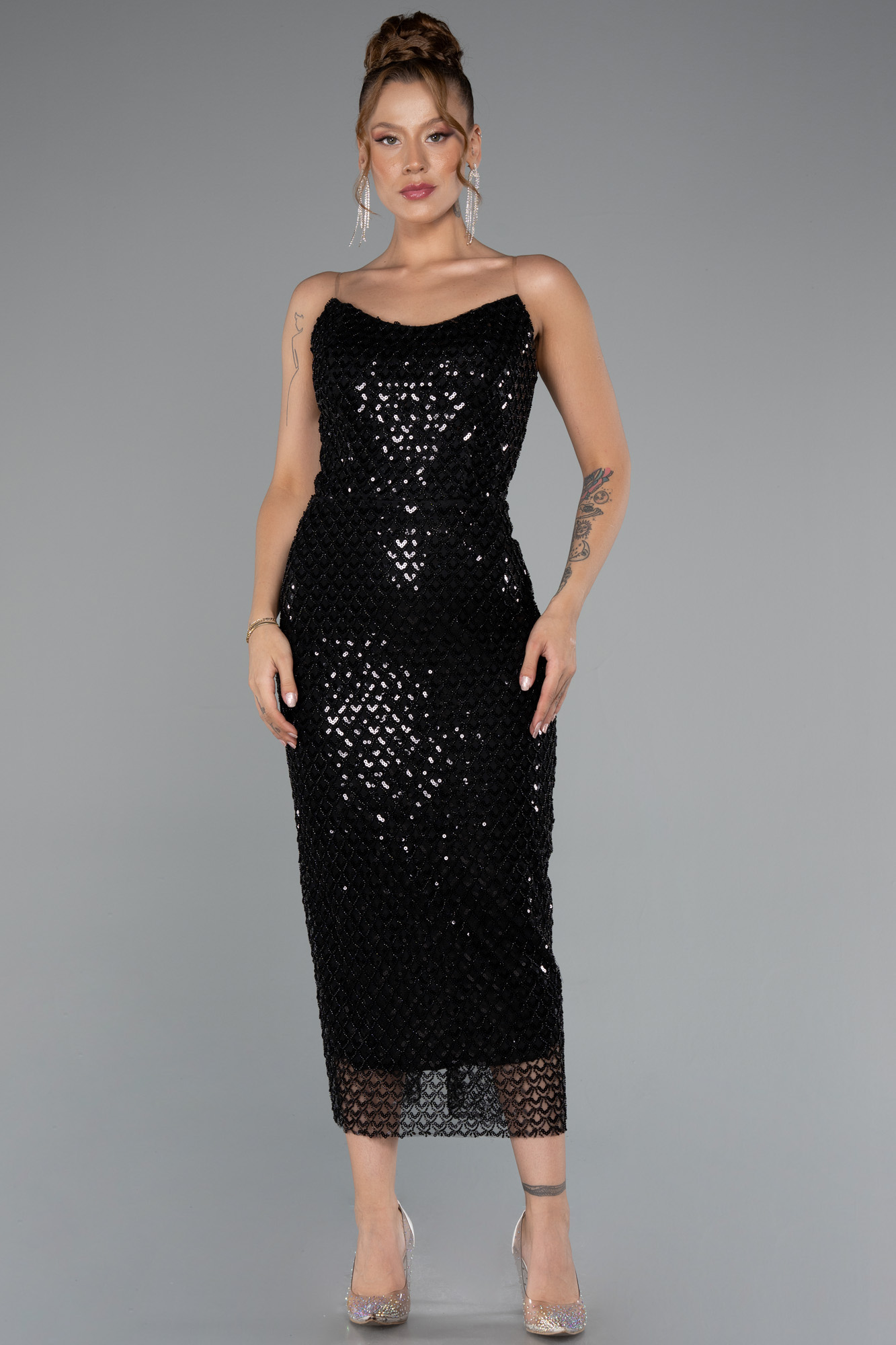 Midi boy davet elbisesi, zarafeti ve şıklığı bir araya getiriyor. Şeffaf askıları ile feminen bir duruş sunan straplez elbise, vücuda oturan kesimi sayesinde silueti zarifçe vurgular. Tamamı pullarla kaplı yüzeyi ışıkla birlikte göz alıcı bir ışıltı yayarken, yarı transparan etek ucu tasarıma modern bir dokunuş katar. Mezuniyet törenlerinden kokteyllere, nişan davetlerinden doğum günü kutlamalarına kadar pek çok özel an için ideal bir seçimdir.