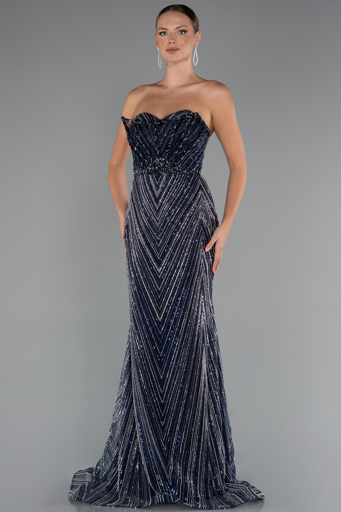 Sraplez özel tasarım abiye, zarafeti ve modern çizgileri bir araya getiren göz alıcı bir modeldir. Straplez yakasıyla omuzları ön plana çıkarırken, balenli yapısı sayesinde vücuda kusursuz bir form kazandırır. Baştan aşağı taş işlemelerle bezenmiş olan bu tasarım, ışığı her açıdan yansıtarak büyüleyici bir ışıltı sunar. Etek kesimi, ince işçiliğiyle şıklığı tamamlarken özel günlerde ihtişamlı bir görünüm elde etmenizi sağlar. Nişan, düğün, gala ve prestijli davetlerde ihtişamlı bir görünüm sunmak için tasarlanmıştır. Özel tasarım ayrıcalığı taşıyan abiye, hem zamansız hem de sofistike bir stil arayanlar için ideal bir seçimdir.