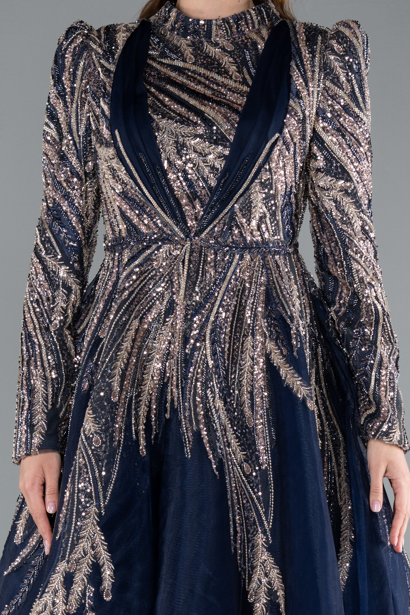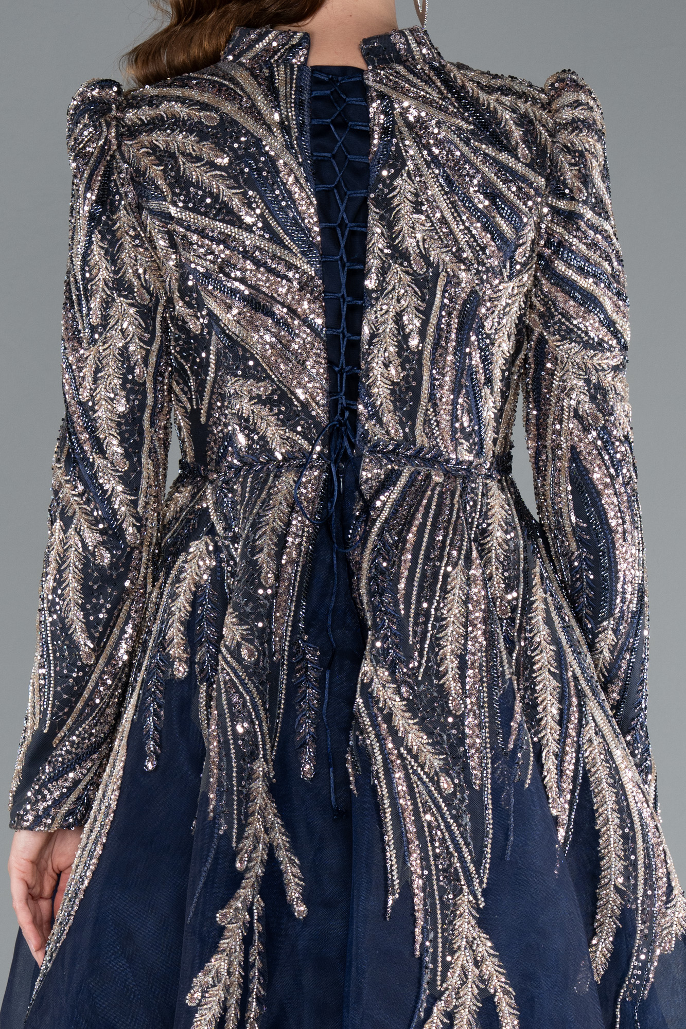 . Uzun kollu tesettür abiye, zarif taş işçilikleriyle ön plana çıkıyor. Üst kısmındaki ışıltılı detaylar, vücudu zarif bir şekilde sararak şıklığınızı vurgular. Etek kısmı ise tüllerle hareketlendirilmiş ve asil bir duruş sergileyen midi boy kesimiyle, hem rahatlık hem de zarafet sunar. Elbisede yer alan ince taş işçiliği, modern ve klasik çizgilerin mükemmel birleşimini yansıtarak etkileyici bir görünüm sağlar. Hem davetlerde hem de özel gecelerde rahatlıkla tercih edilebilecek tesettür model, her ortamda dikkatleri üzerinizde toplamanıza yardımcı olur. Tesettürlü şıklık arayanlar için ideal bir seçenek olan midi boy abiye, her detayıyla zarif bir etki yaratır. Tesettür abiye koleksiyonumuzu görmek için