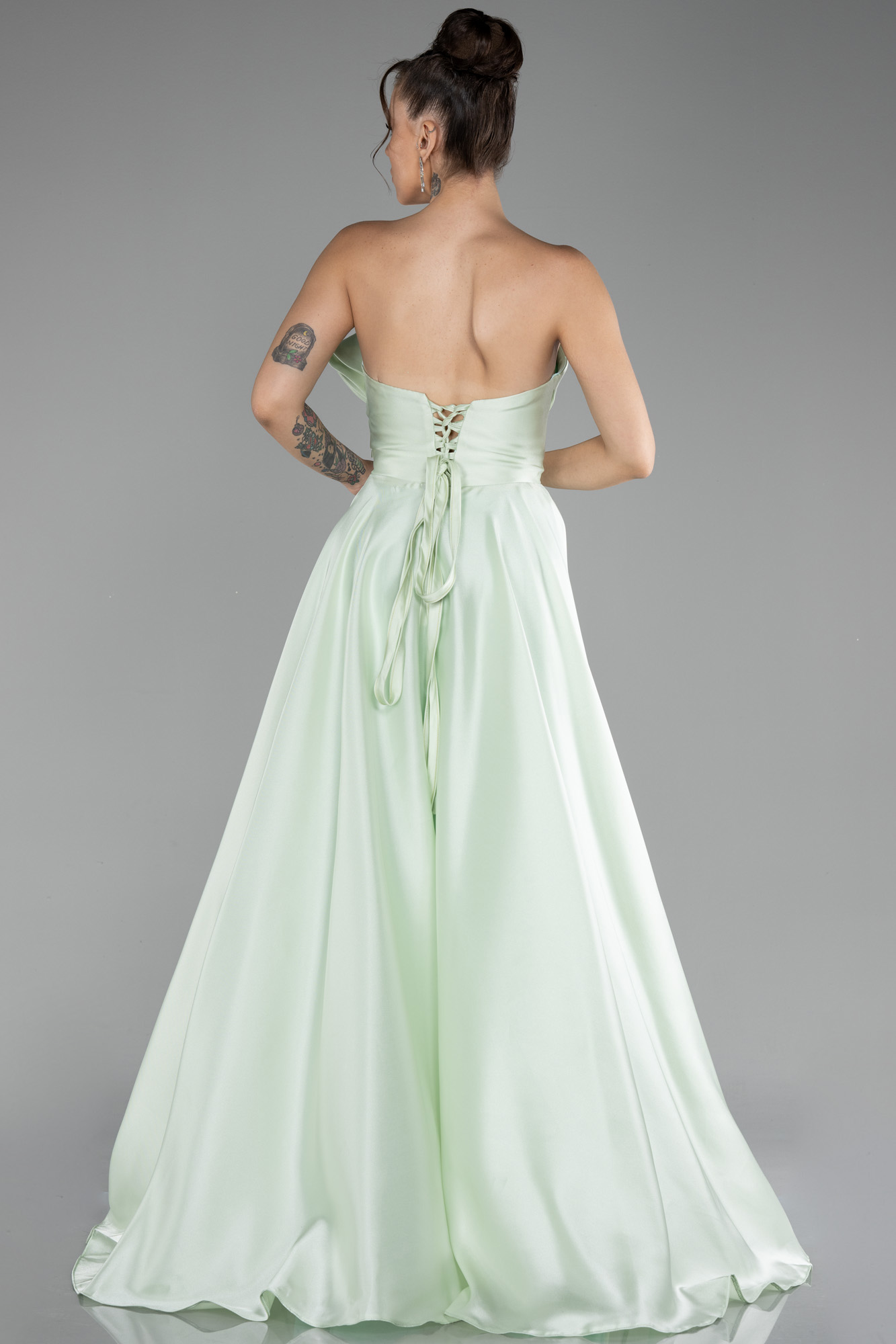 Mint Straplez Bacak Dekolteli Uzun Saten Abiye ABU4222