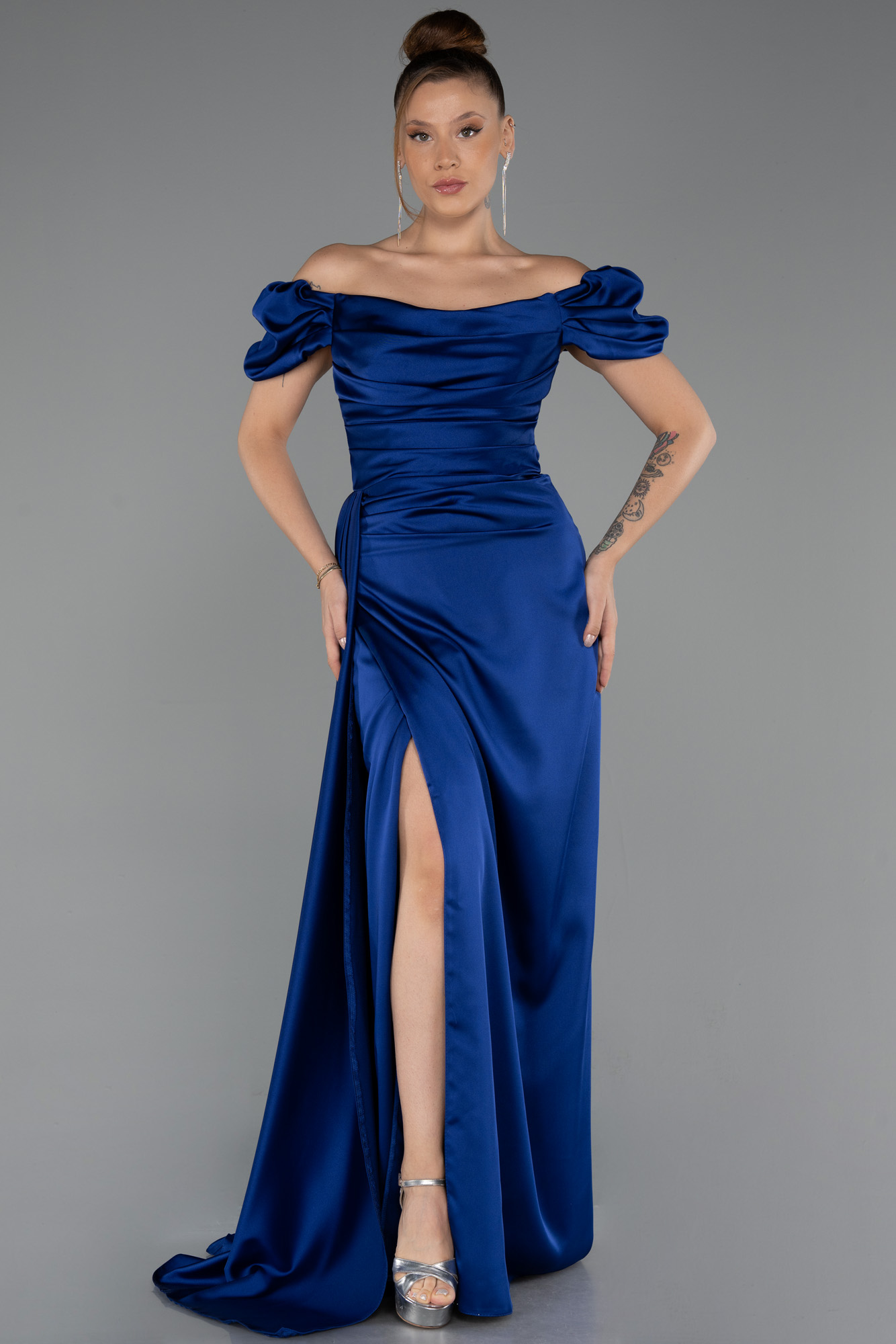 Parlement Kayık Yaka Kuyruklu Uzun Saten Abiye ABU1606