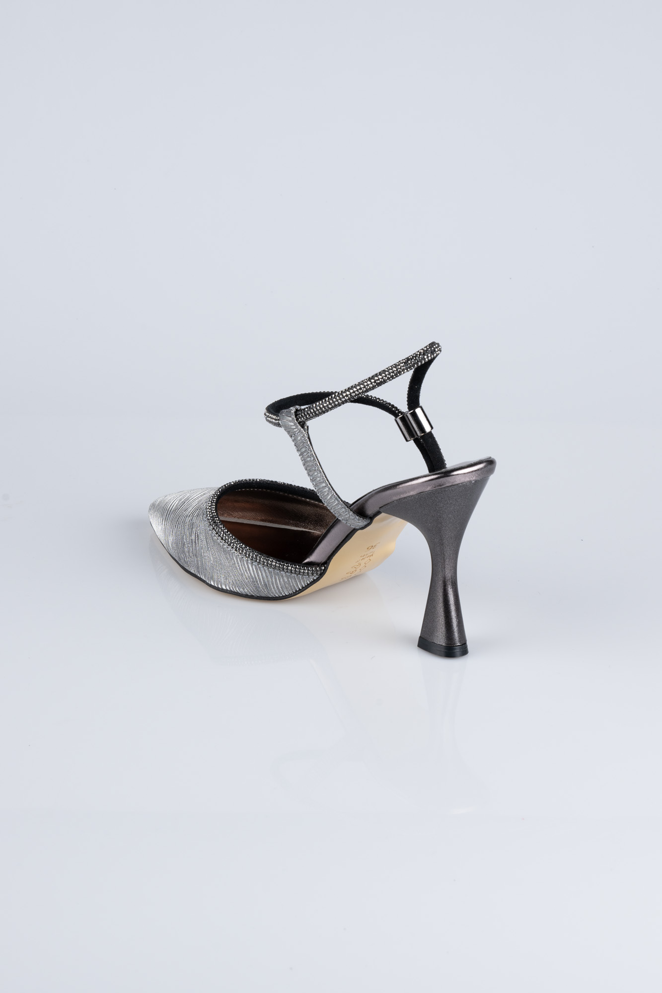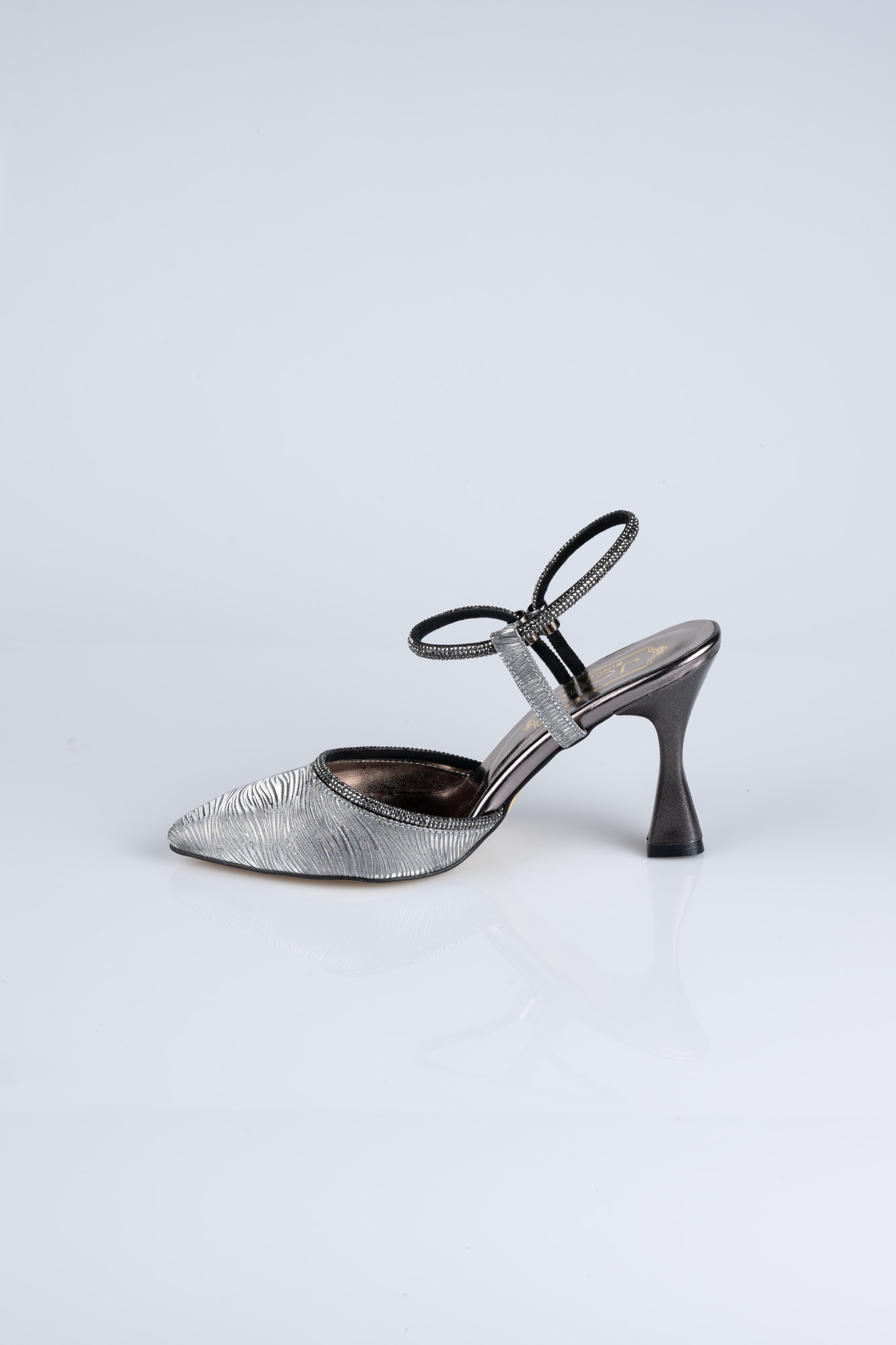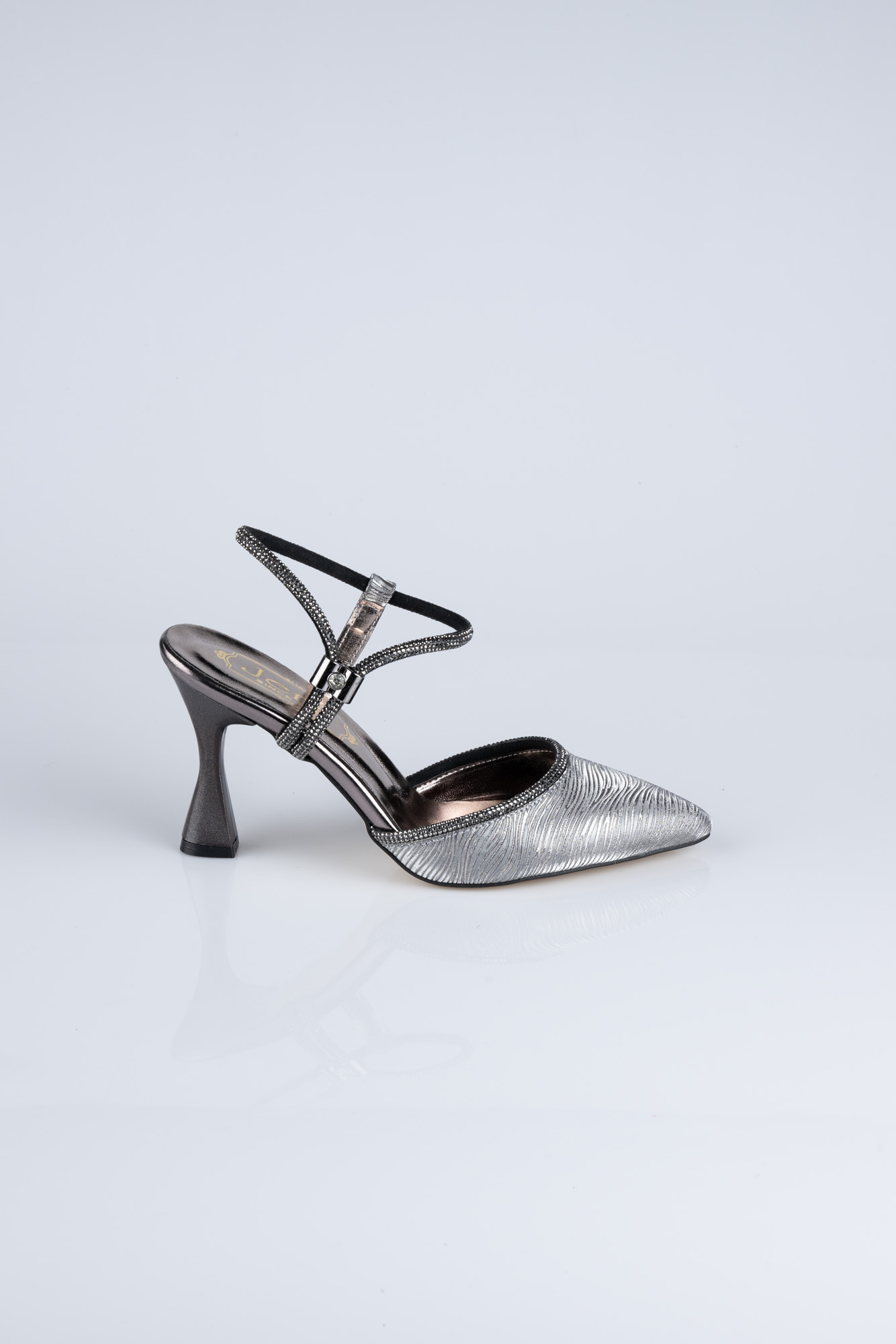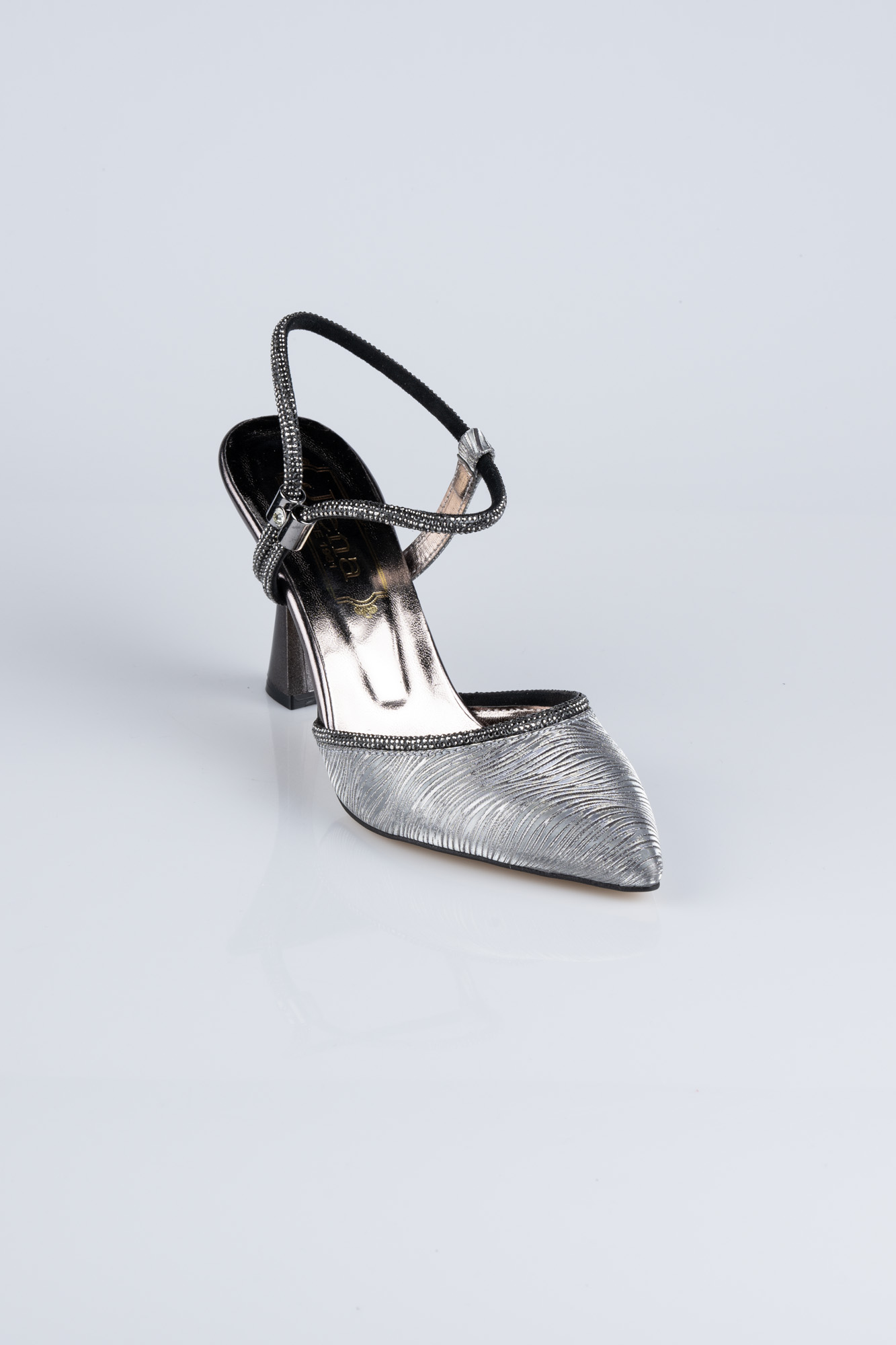 Platin Lazer Kesim Stiletto Abiye Ayakkabı MJ5150
