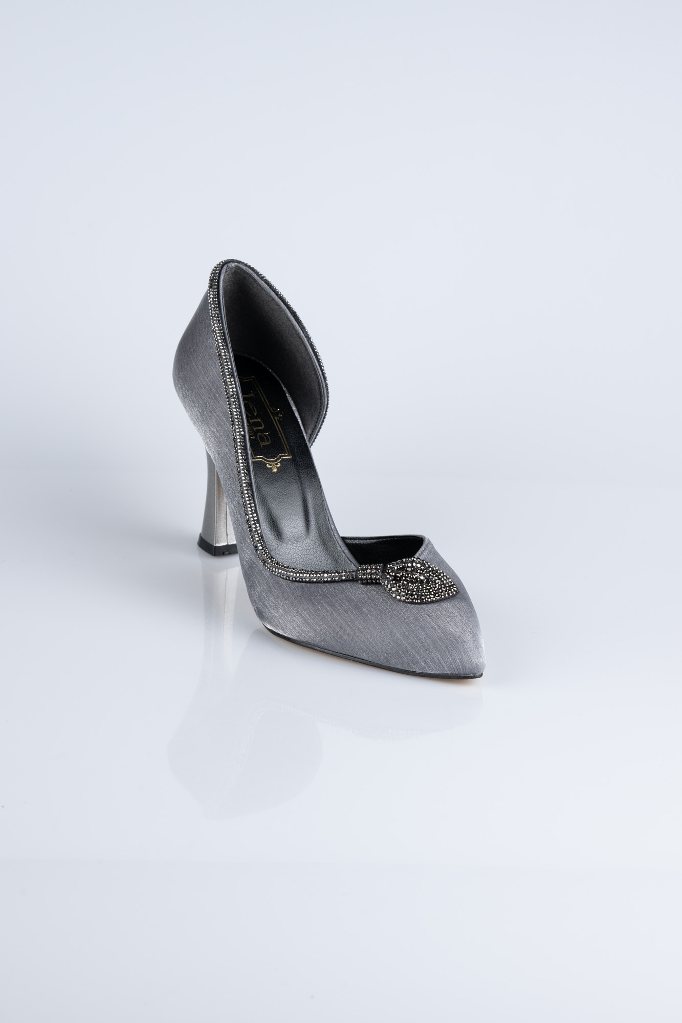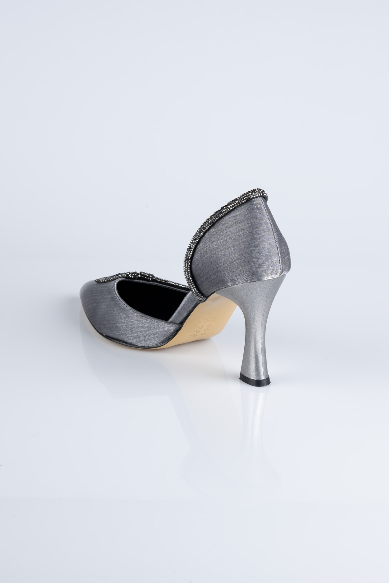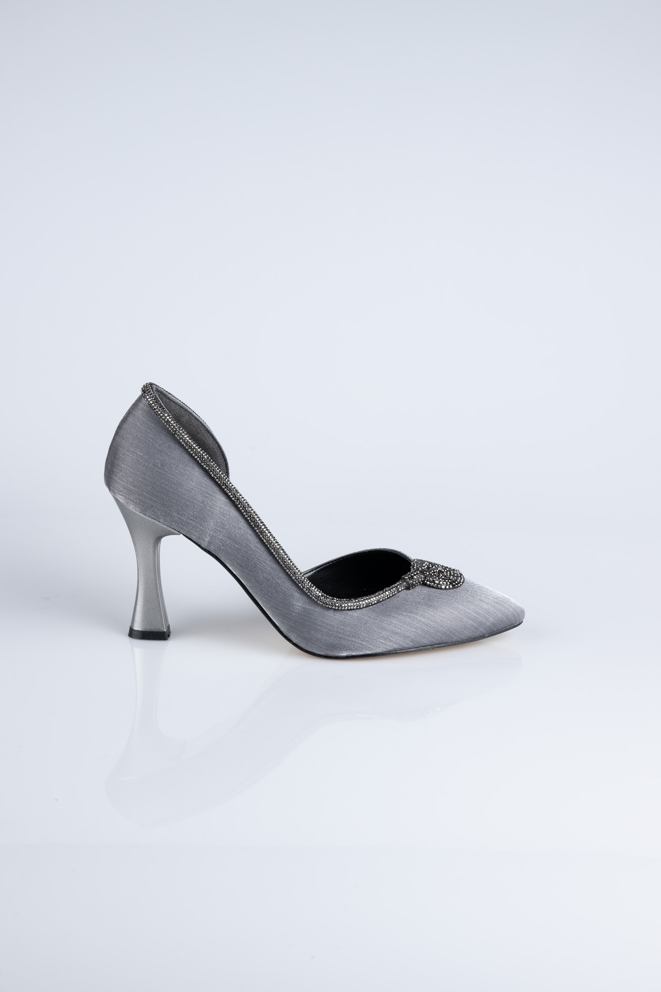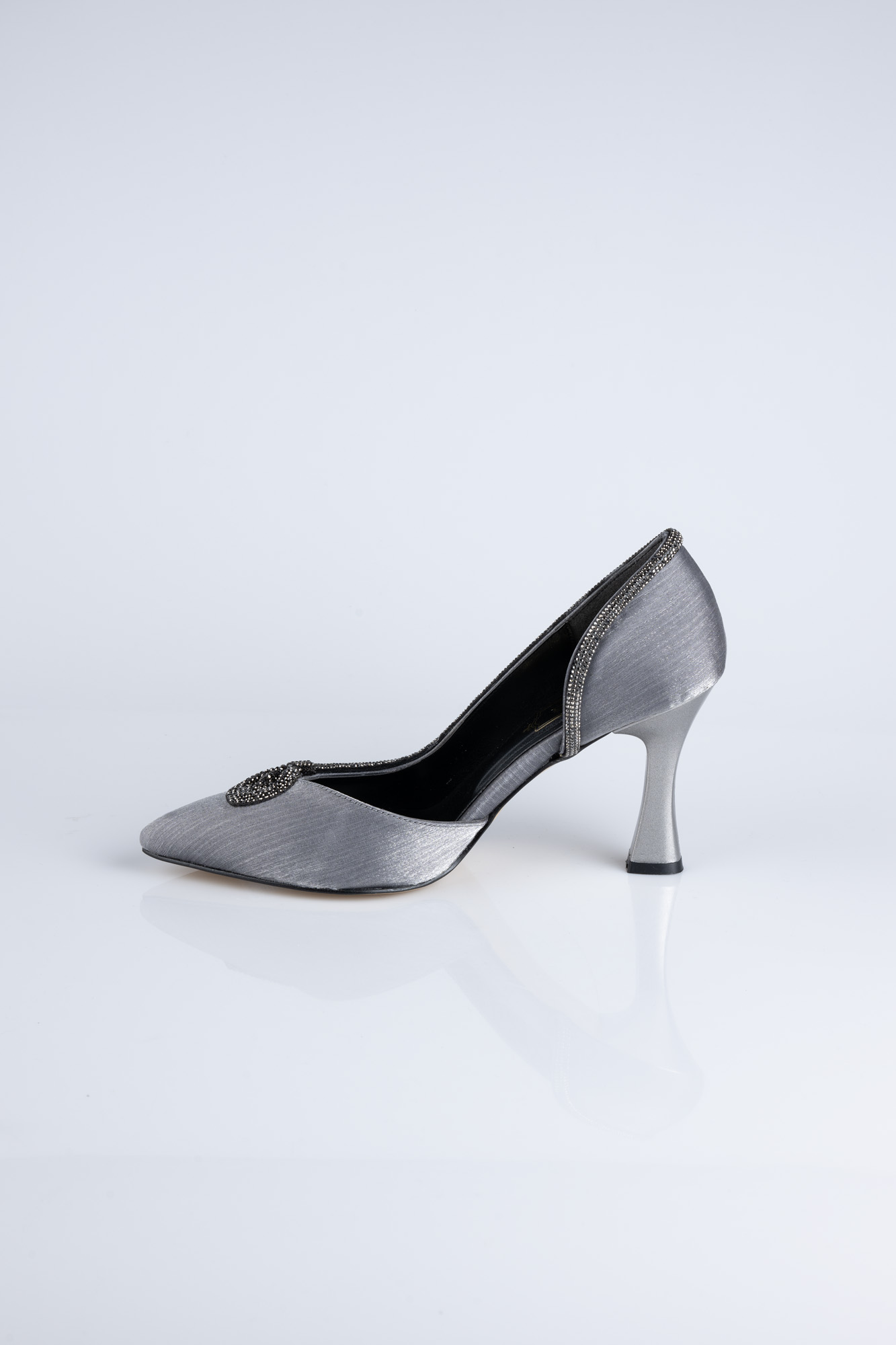 Platin Taşlı Saten Stiletto Abiye Ayakkabı MJ8008