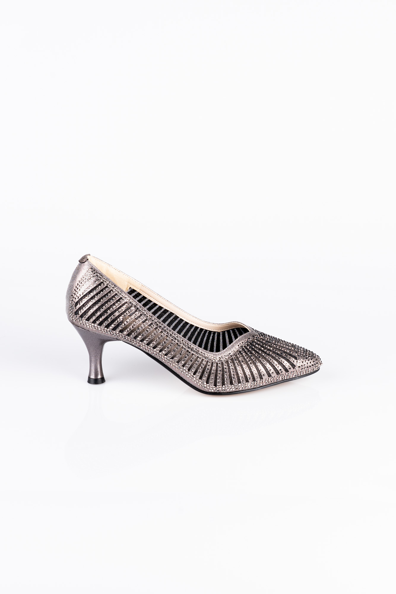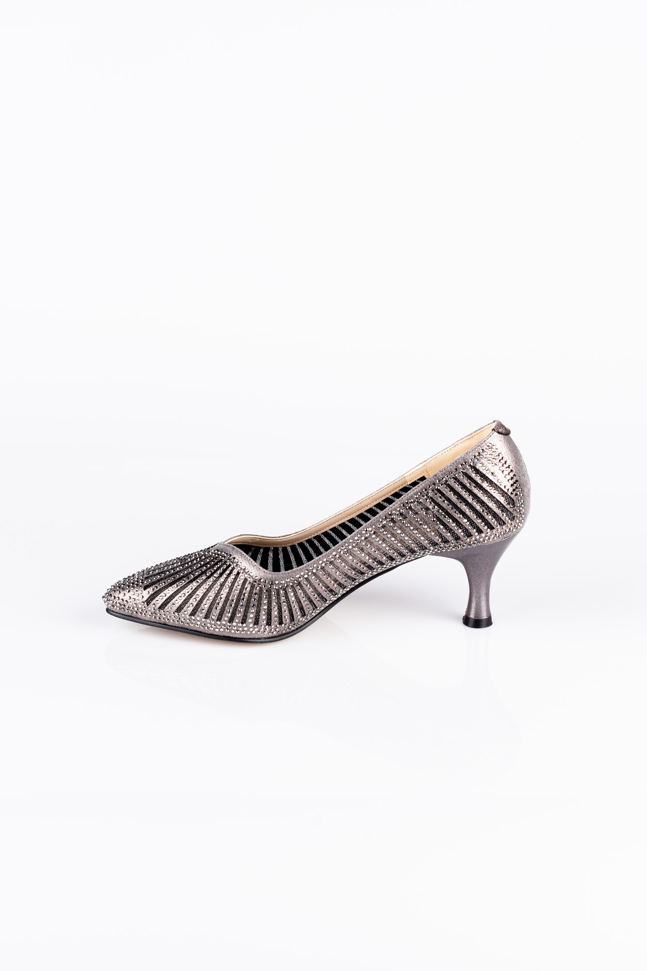 Platin Taşlı Stiletto Abiye Ayakkabı MJ5151