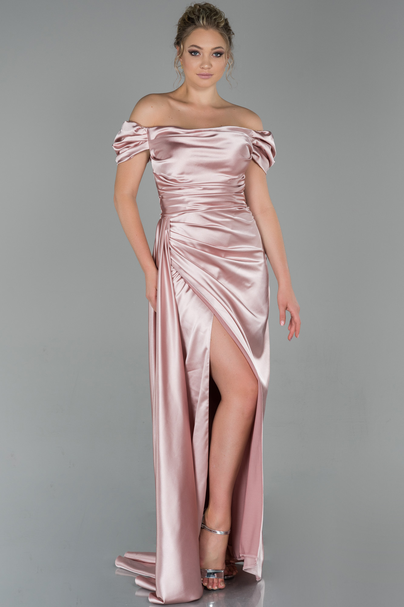. Saten kumaş kayık yaka bu modelimiz geniş renk ve beden seçenekleriyle tüm kadınlarımıza hitap ediyor. Derin bacak dekolteli bu modelimizi gece tüm davetlerinizde rahatlıkla tercih ederek şık ve zarif görünümünüzü yansıtabilirsiniz. Yandan kuyruklu ürünümüzü zarif bir küpe, arkada toplanmış dalgalı topuz saçlar ve topuklu şık stiletto ayakkabılar ile kombinleyebilirsiniz.