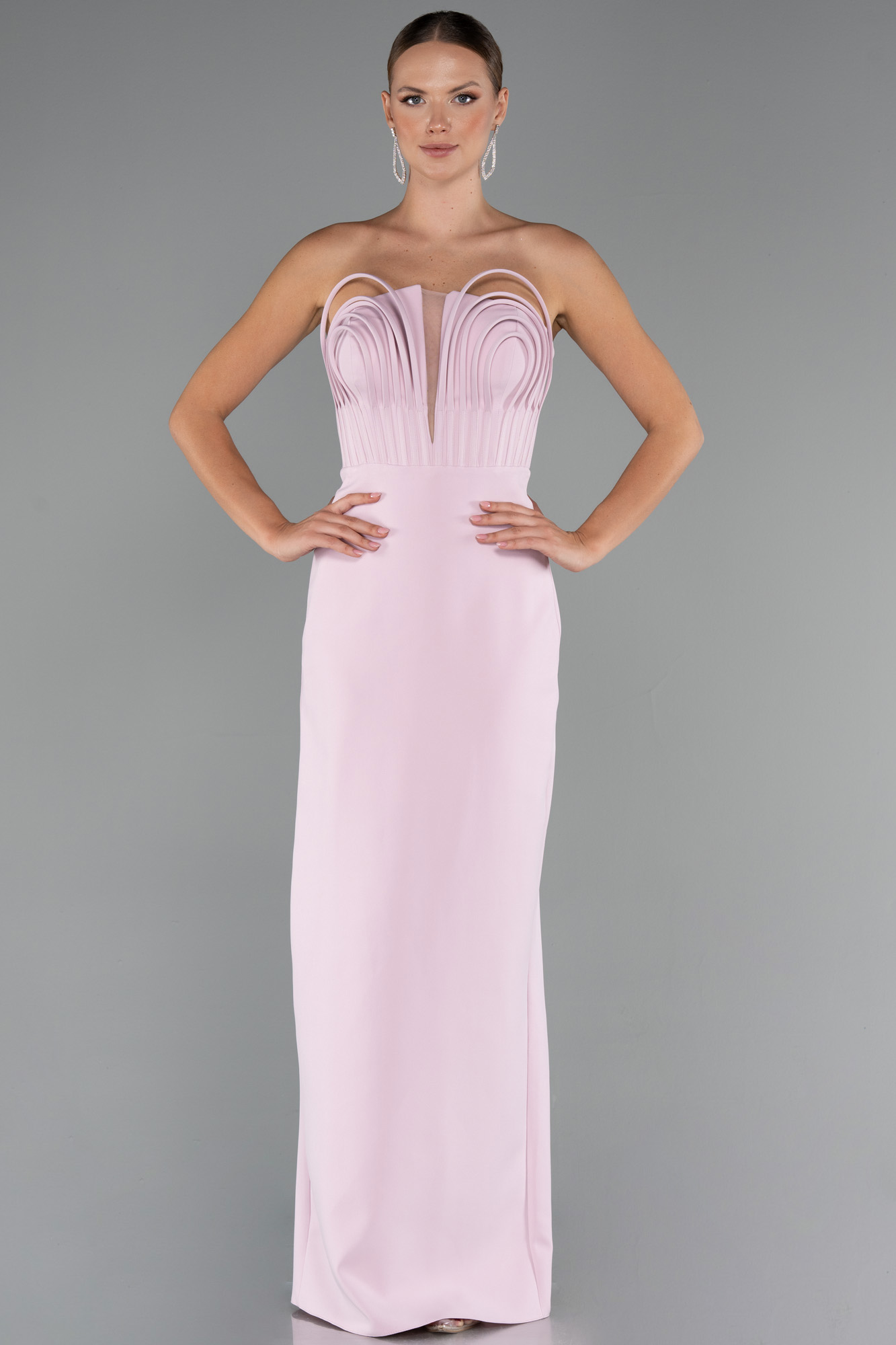 Pudra Straplez Balenli Uzun Balık Abiye Elbise ABU5235