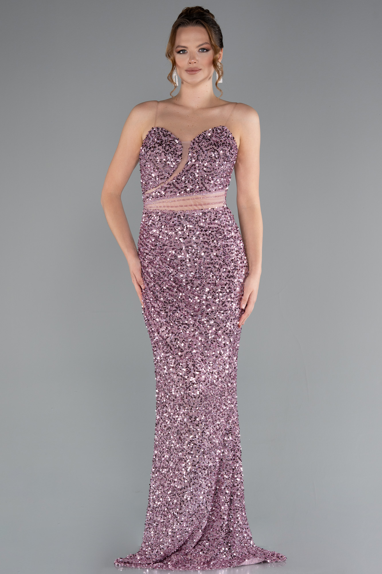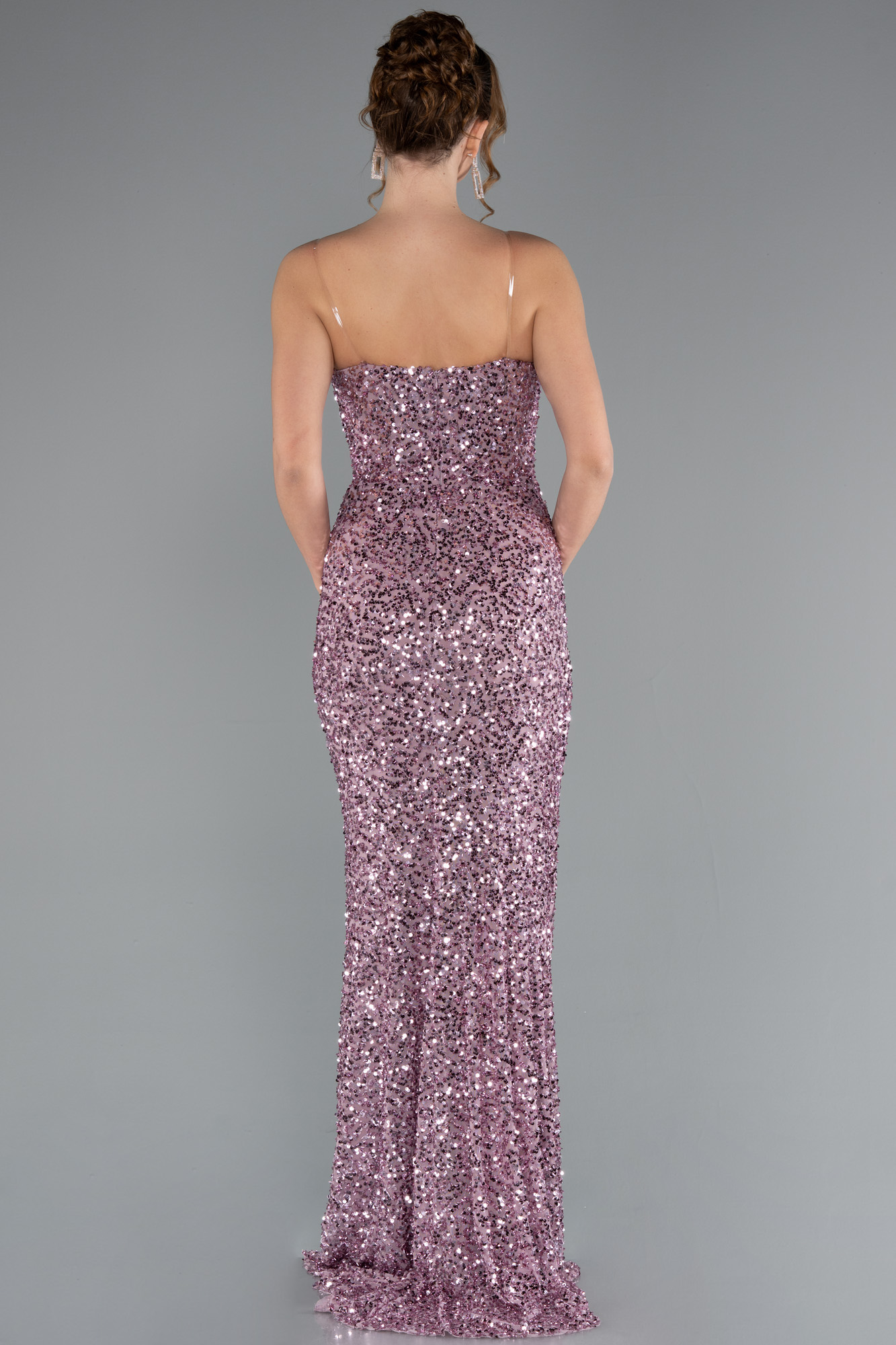 Pudra Straplez Uzun Pullu Abiye Elbise ABU5014