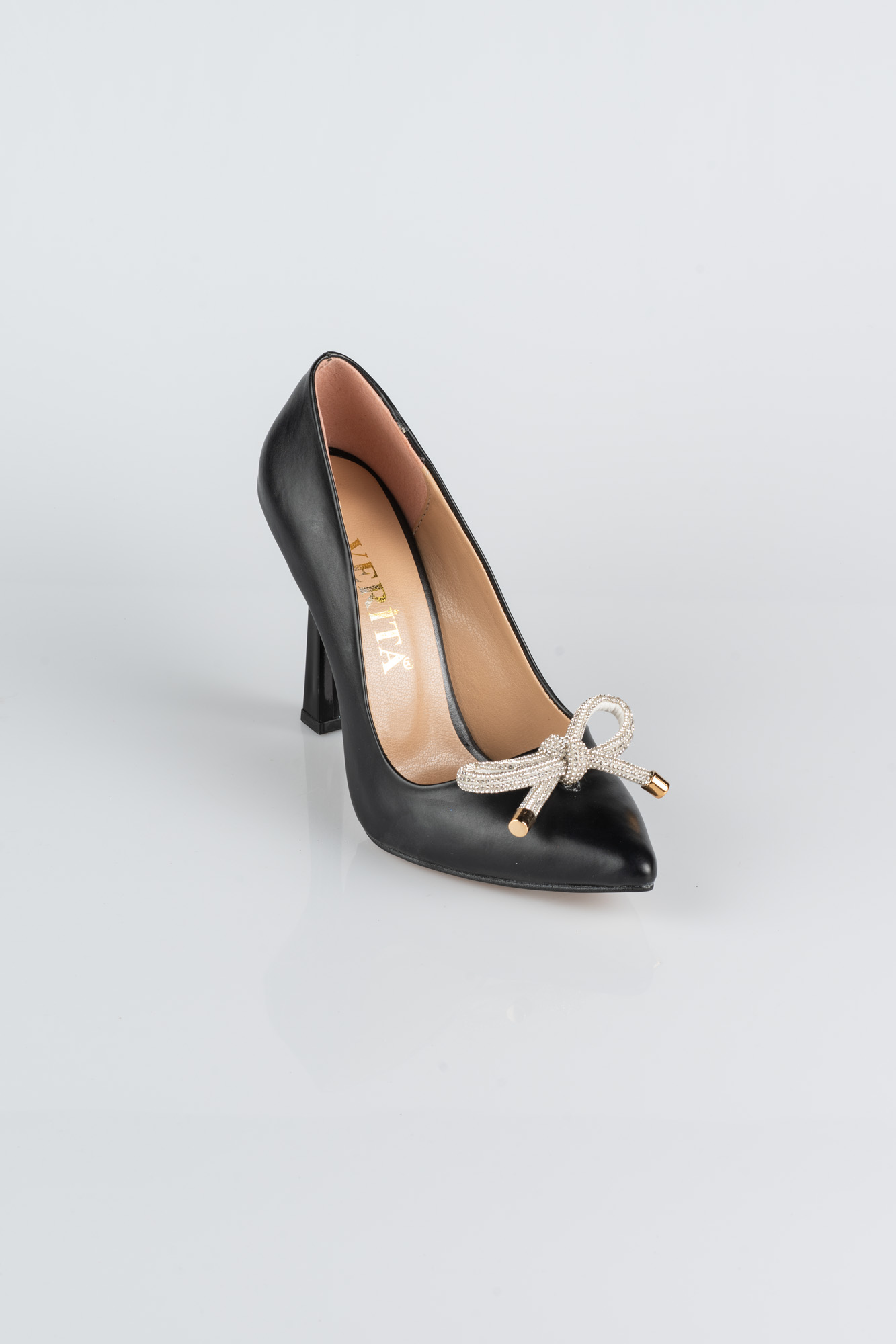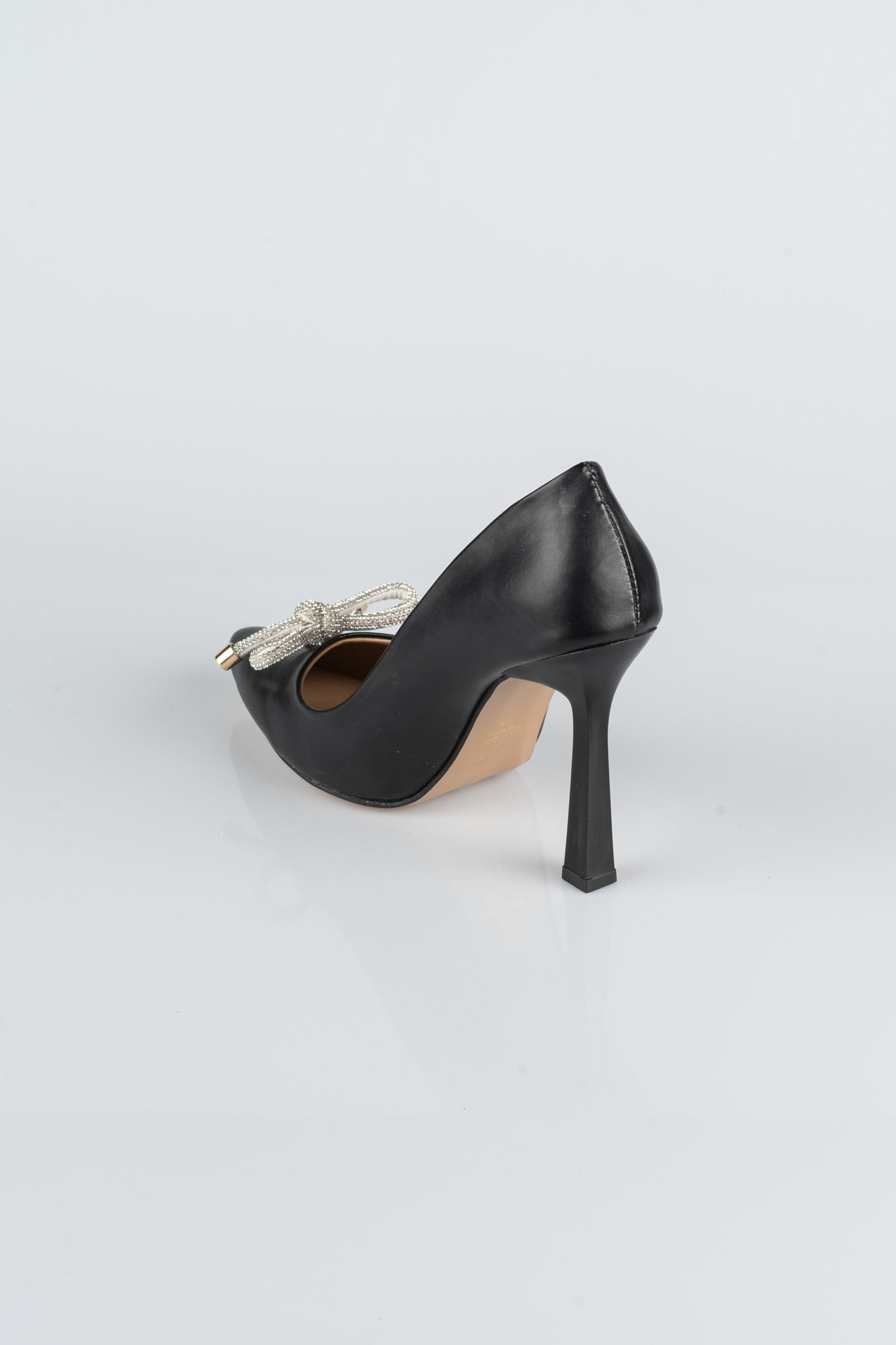 Siyah Deri Stiletto Abiye Ayakkabı AB1095