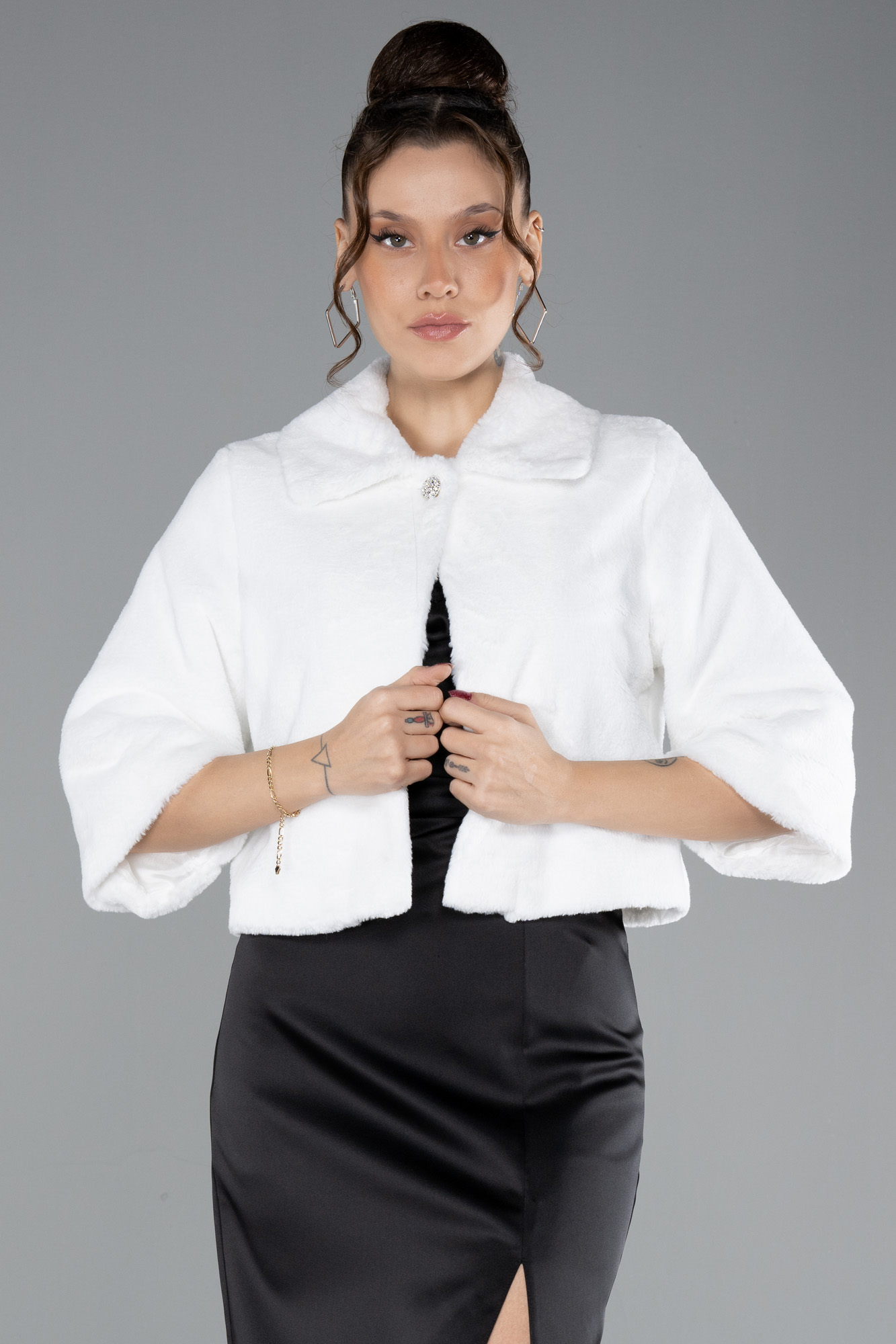 . Kapri kollu ve kürk görünümlü tasarımıyla öne çıkan abiye ceket, zarif detaylarıyla şık kombinlerinizi tamamlamak için hazırlandı. Yakasında yer alan düğme broşu, tasarıma sofistike bir dokunuş katarken, hafif kumaşı sayesinde konforlu bir kullanım sunar. Beyaz rengiyle gelinlik üstü bolero, gelinlik üstü etol veya peluş olarak da tercih edilebilen model, abiye elbiselerle uyum sağlayarak modern ve estetik bir görünüm elde etmenizi sağlar. Özel günlerde hem şıklığı hem de rahatlığı bir arada sunan abiye ceket, zarafetinizi ön plana çıkaracak mükemmel bir seçenektir.