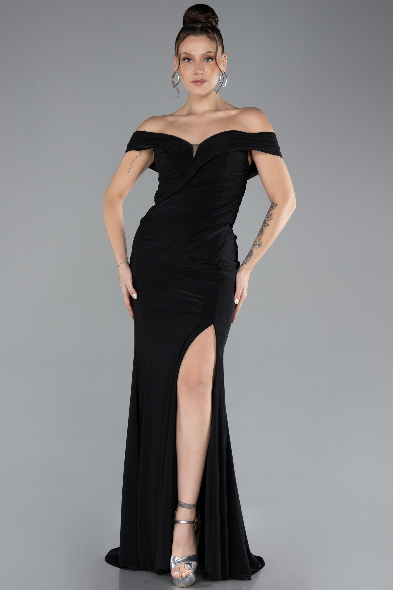 Kayık yaka uzun abiye elbise, asil ve etkileyici bir görünüm sunuyor. Yaka kesimiyle boyun ve omuz hatlarını zarifçe öne çıkararak göz alıcı bir siluet oluşturuyor. Yumuşak ve dökümlü kumaşı sayesinde hem konforlu hem de şık bir tercih. Elbisede bulunan derin yırtmaç, hareketlerinize zarif bir akış kazandırırken, modern bir dokunuş sağlıyor. Kayık yaka elbise nişan, düğün, özel davetler ve gala geceleri gibi farklı etkinlikler için mükemmel bir seçenek.
