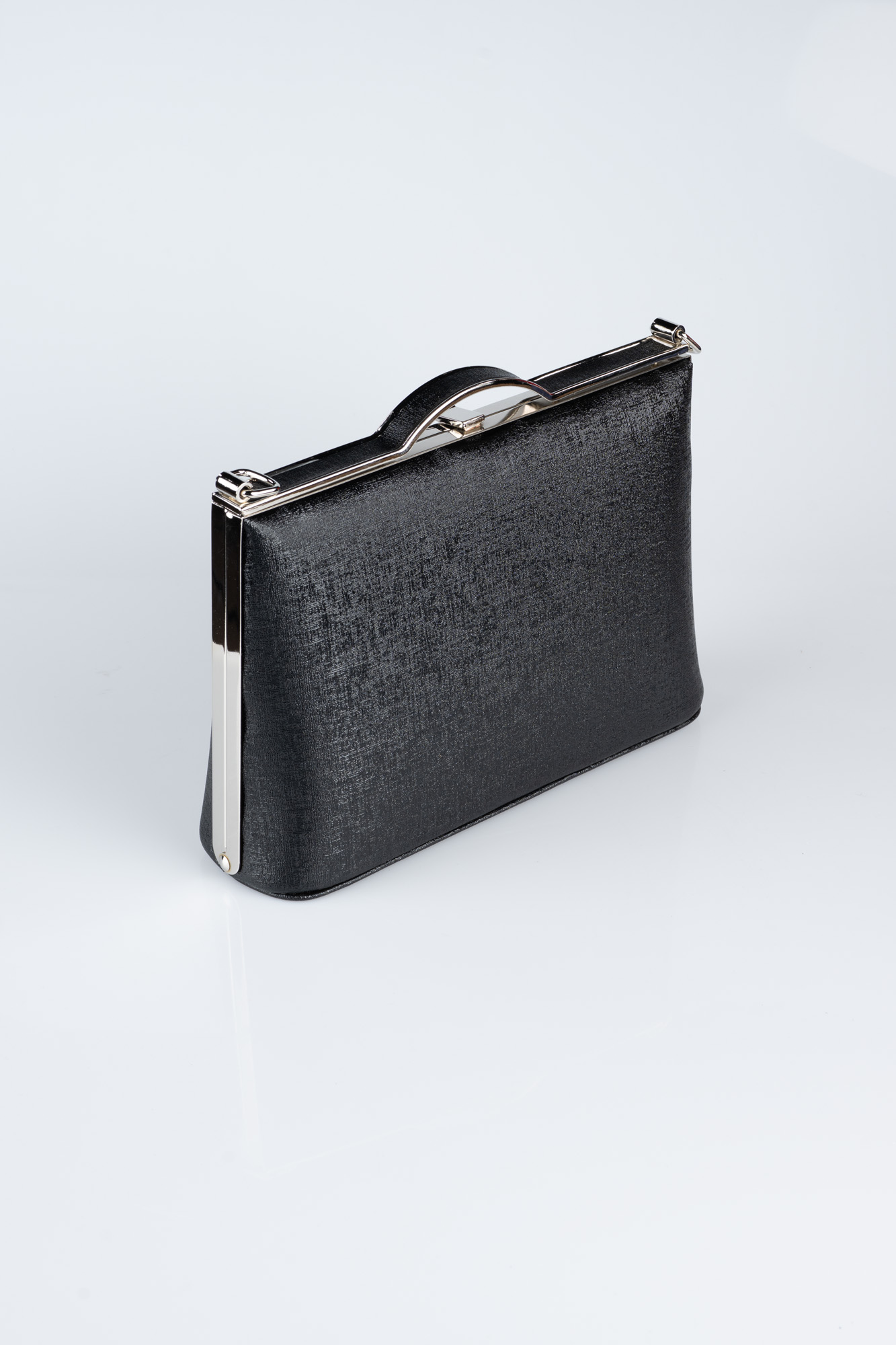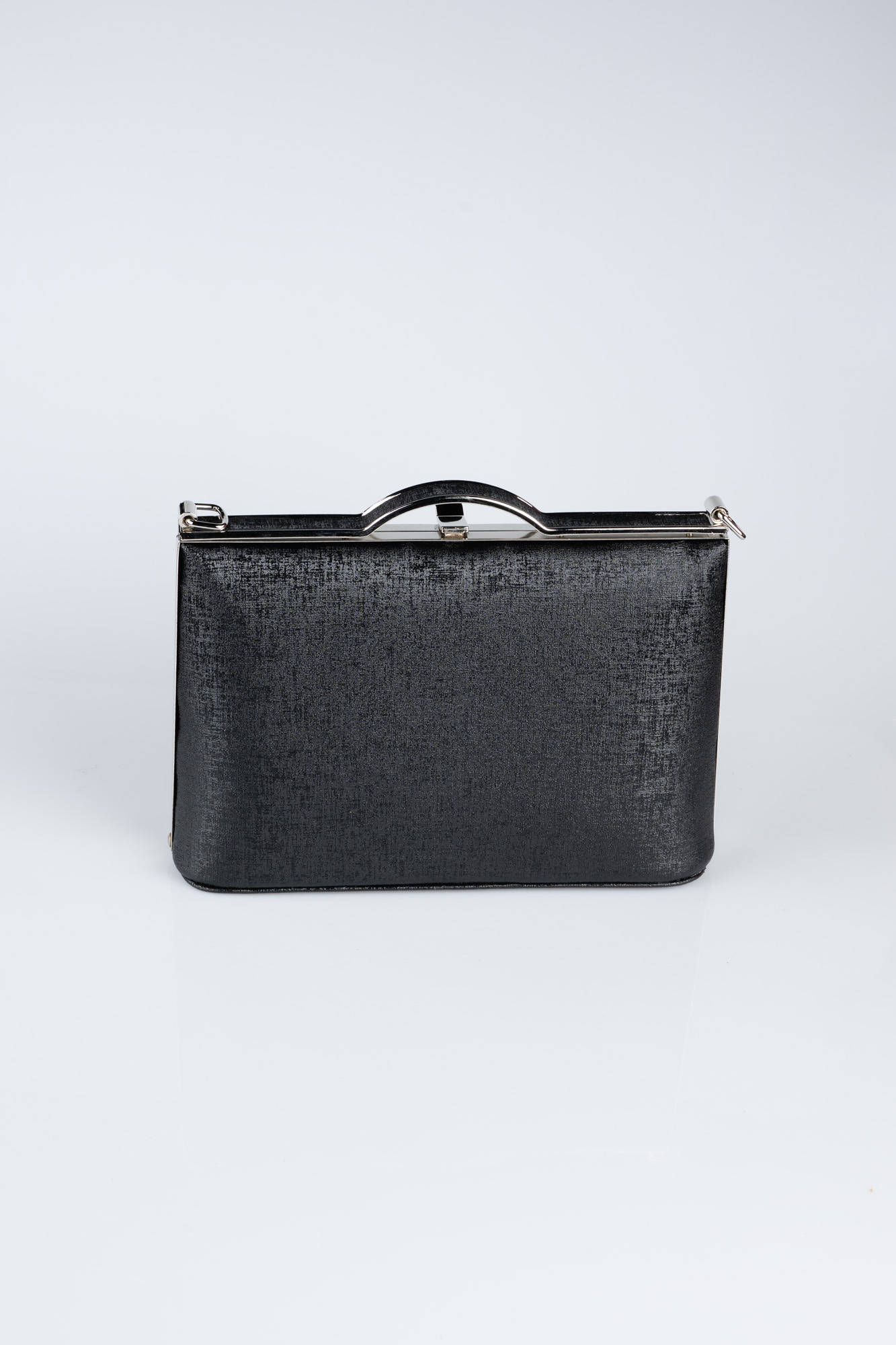 Siyah Tırtıklı Desenli Deri Gece Çantası KC126