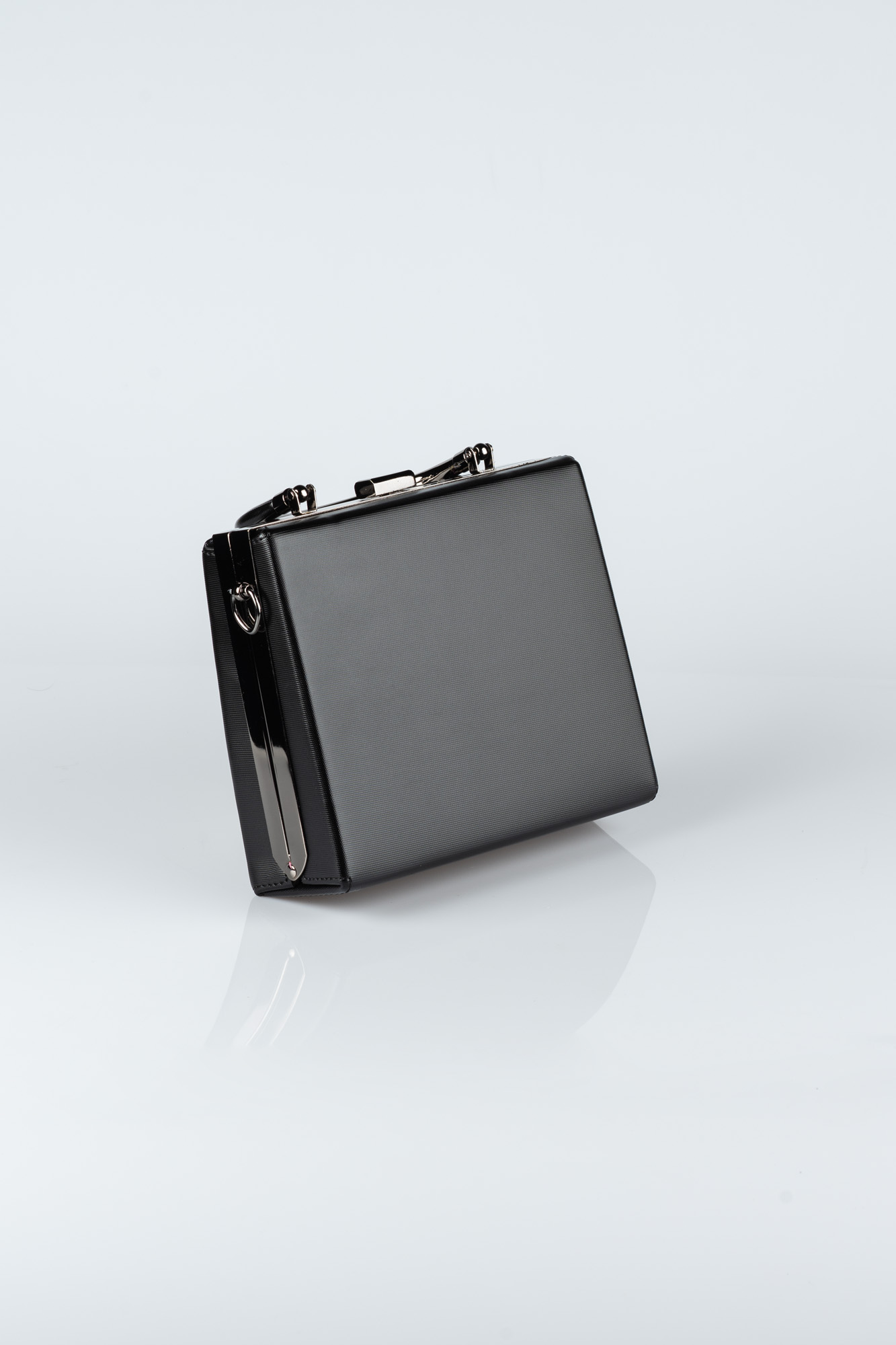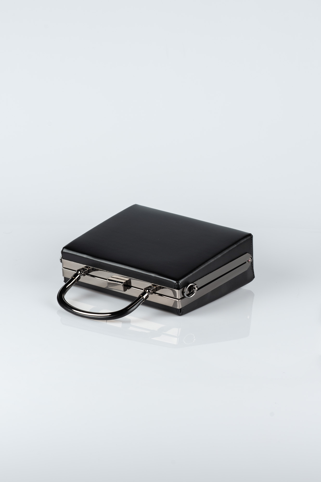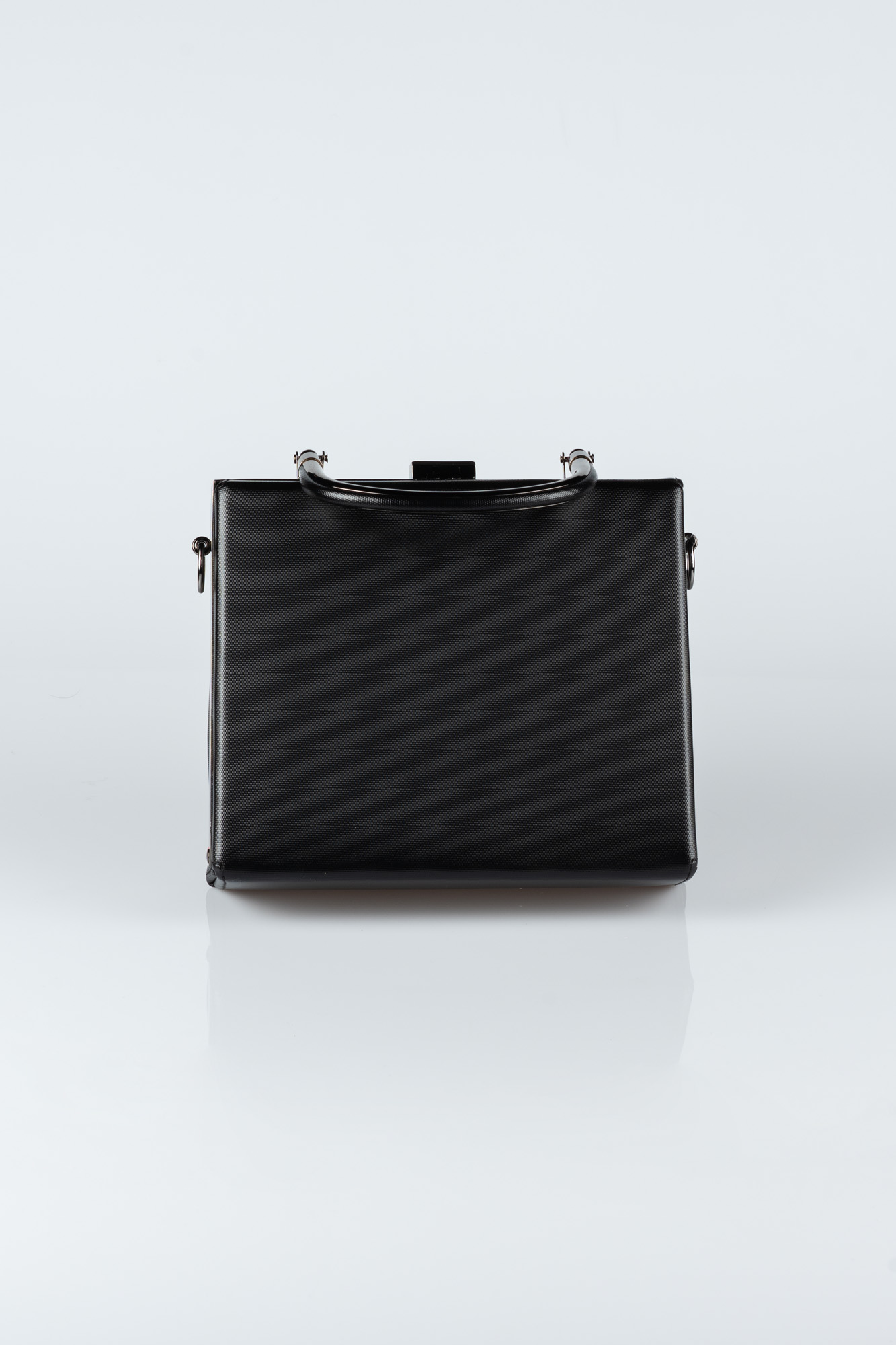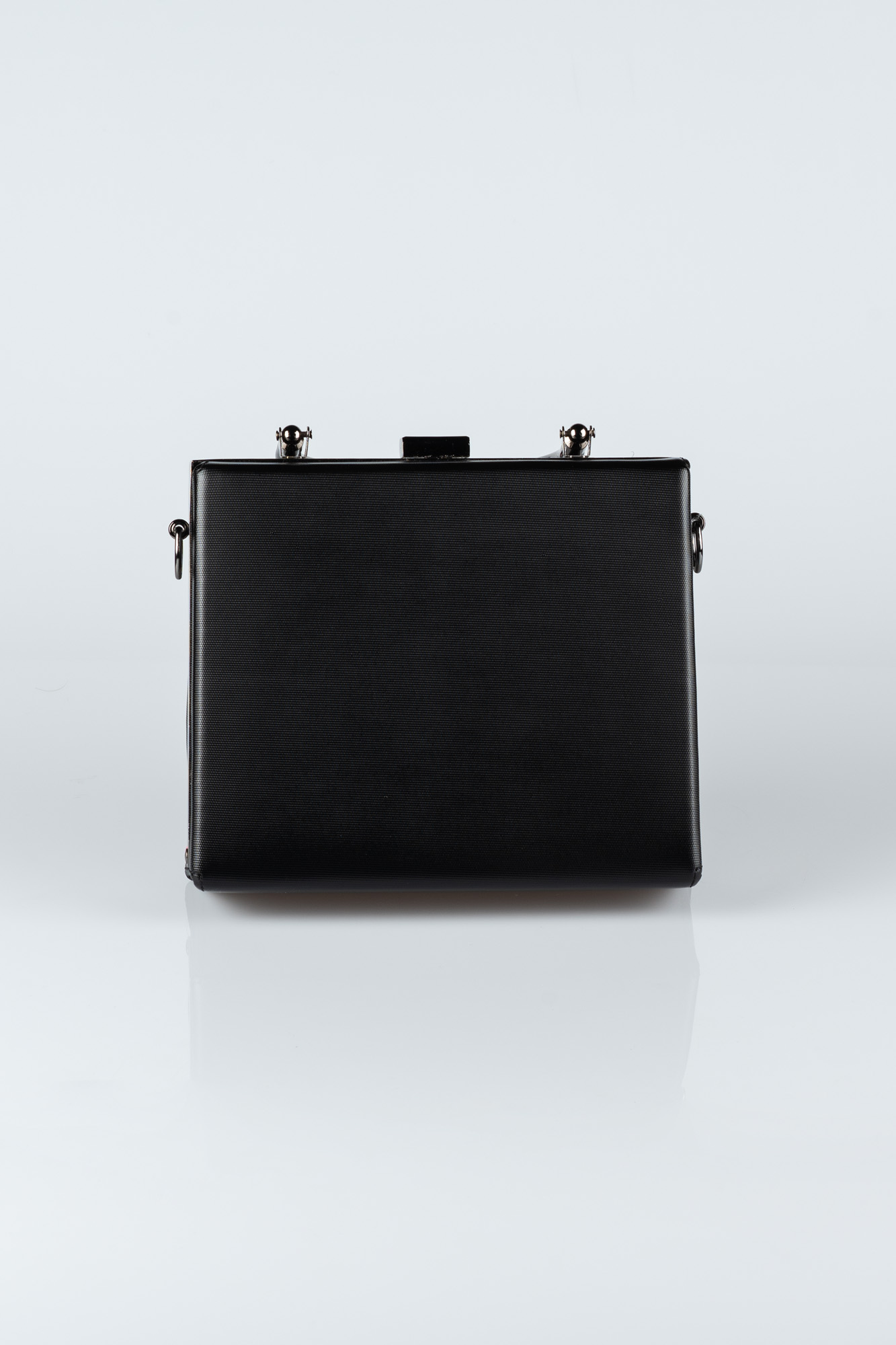 Siyah Tırtıklı Desenli Deri Kutu Çanta V294