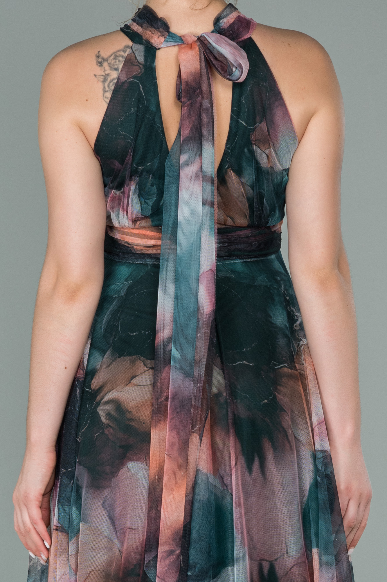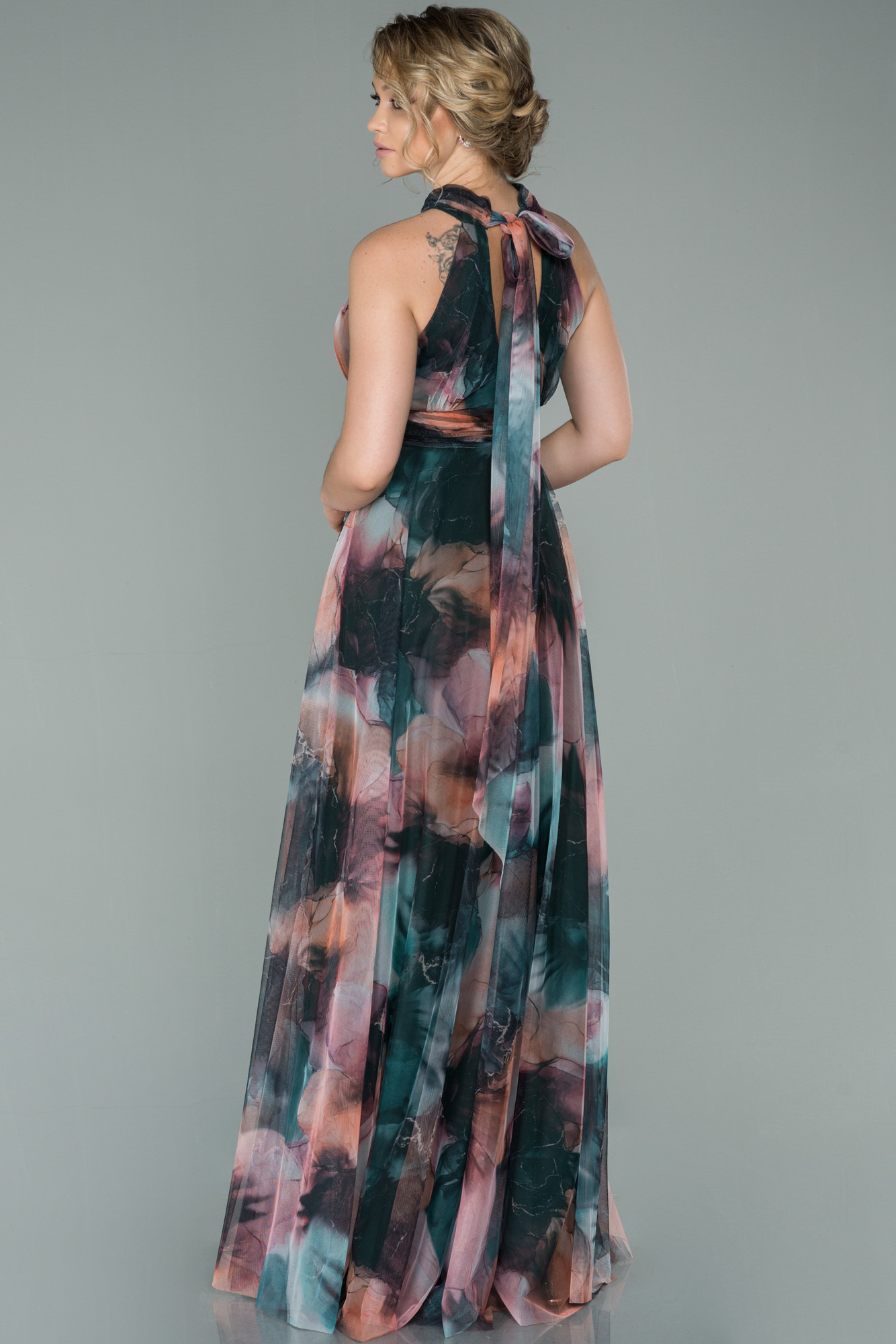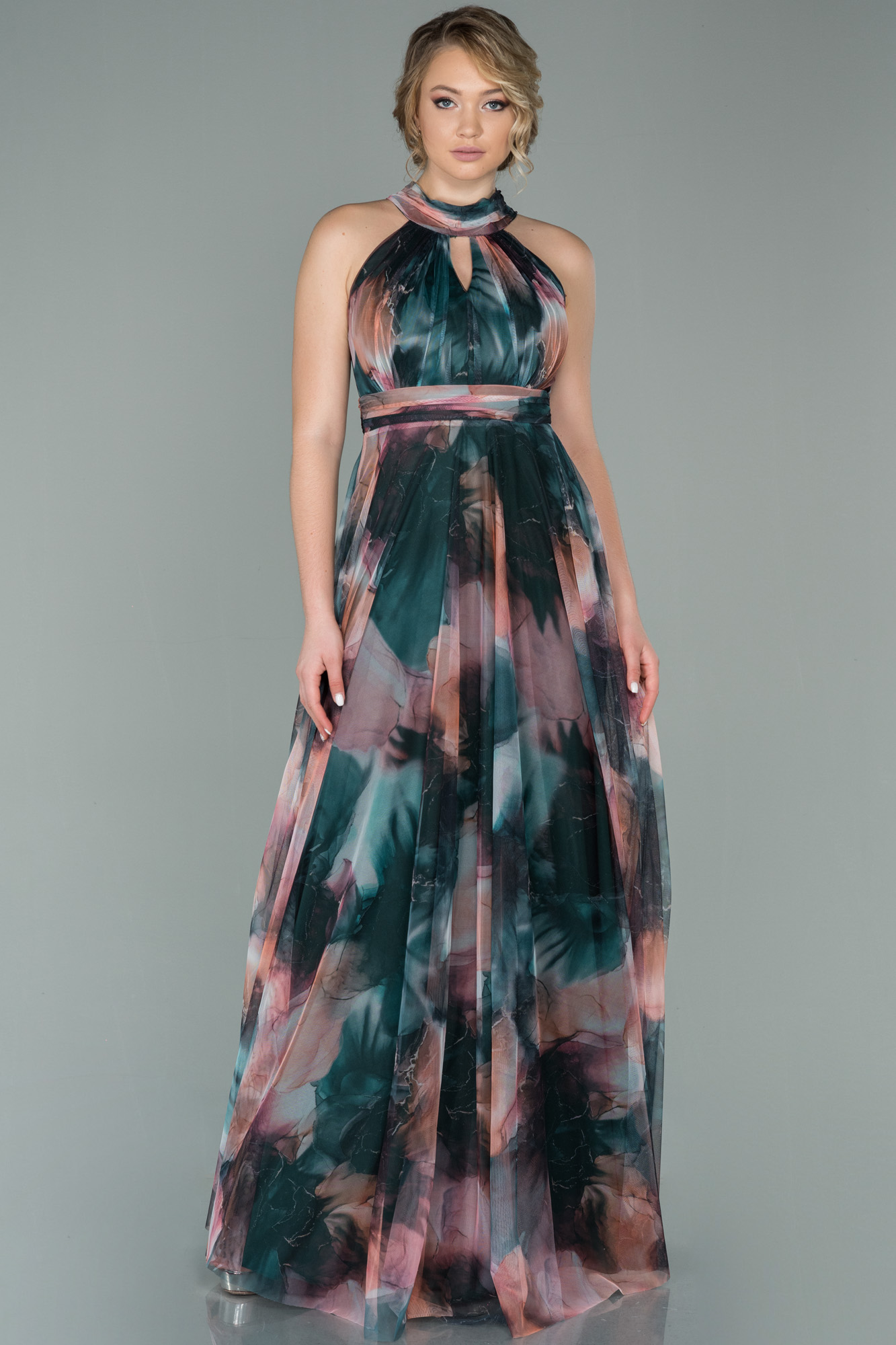 . Çiçekli kumaşıyla dikkat çeken boyundan bağlamalı uzun abiye elbise modelimiz özellikle yaz davetleriniz vazgeçilmez ürünlerinden biri olacak cinsten. Her yaştan ve bedenden kadının severek kullanacağı bu belden oturtmalı dekoltesiz abiye elbise yüksek topuklu ayakkabılar ve sade takılar ile kombinlenebilir. Ürün renkli olduğu için bu tarz abiye elbiseleri olabildiğince abartısız aksesuarlar ile tamamlayabilirsiniz.